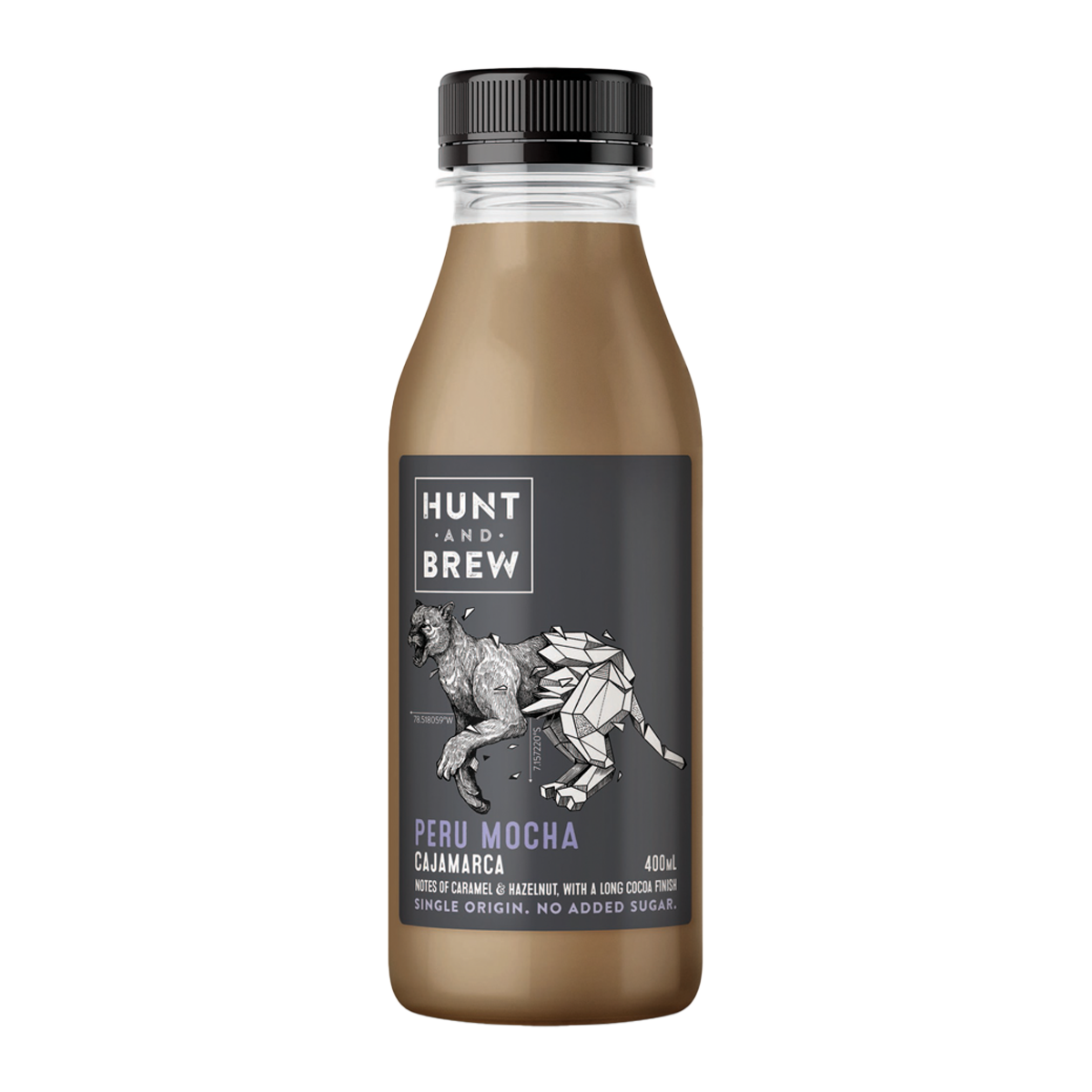 Hunt and Brew Peru Cold Brew Mocha 400ml: Indulge in rich, smooth coffee flavor with a hint of chocolate in every sip. Energize your day with this refreshing cold brew that's perfect for on-the-go enjoyment. Experience the taste of Peru in every bottle.