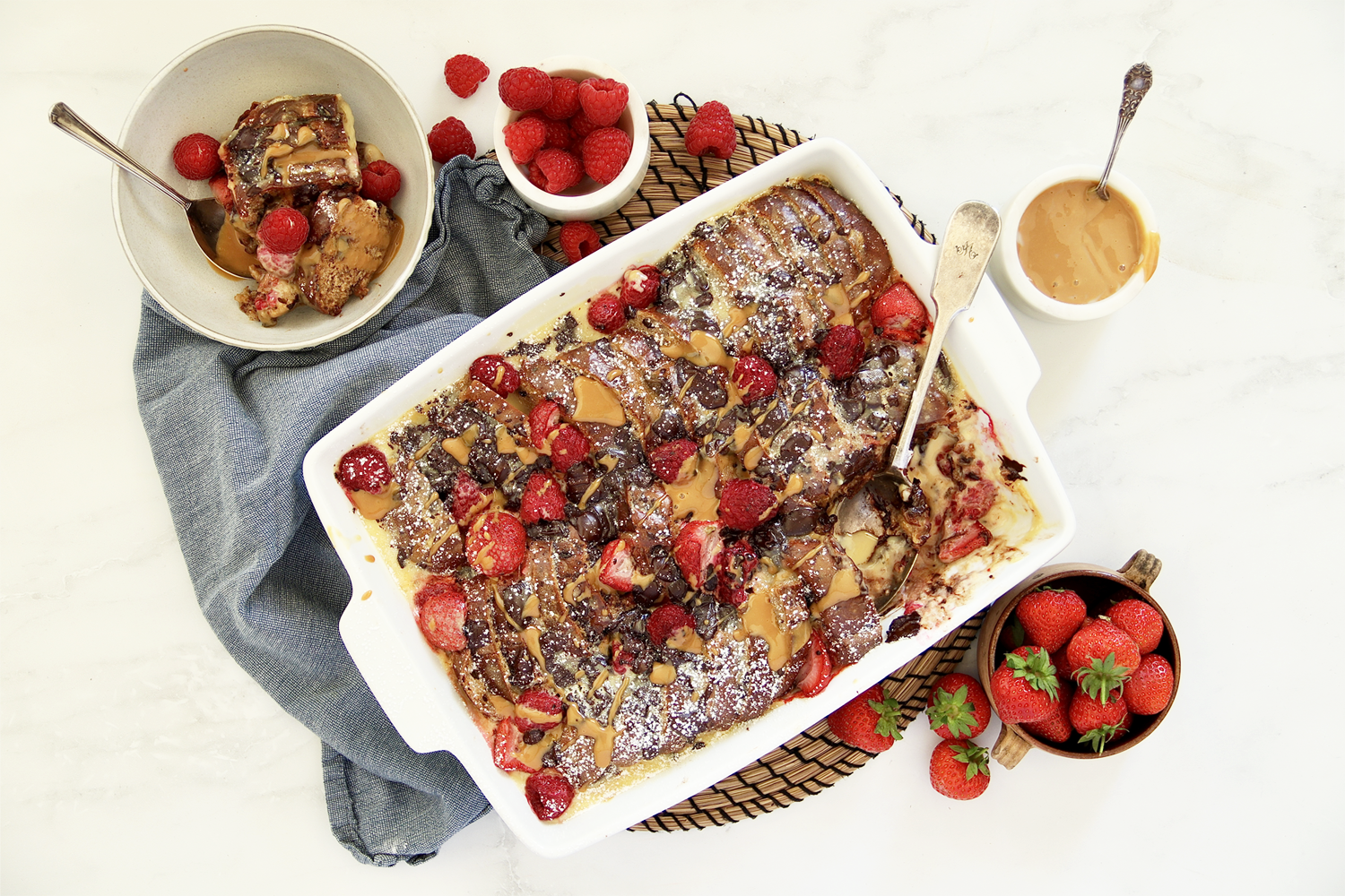 Chocolate and Dulce De Leche Hot Cross Bun Pudding