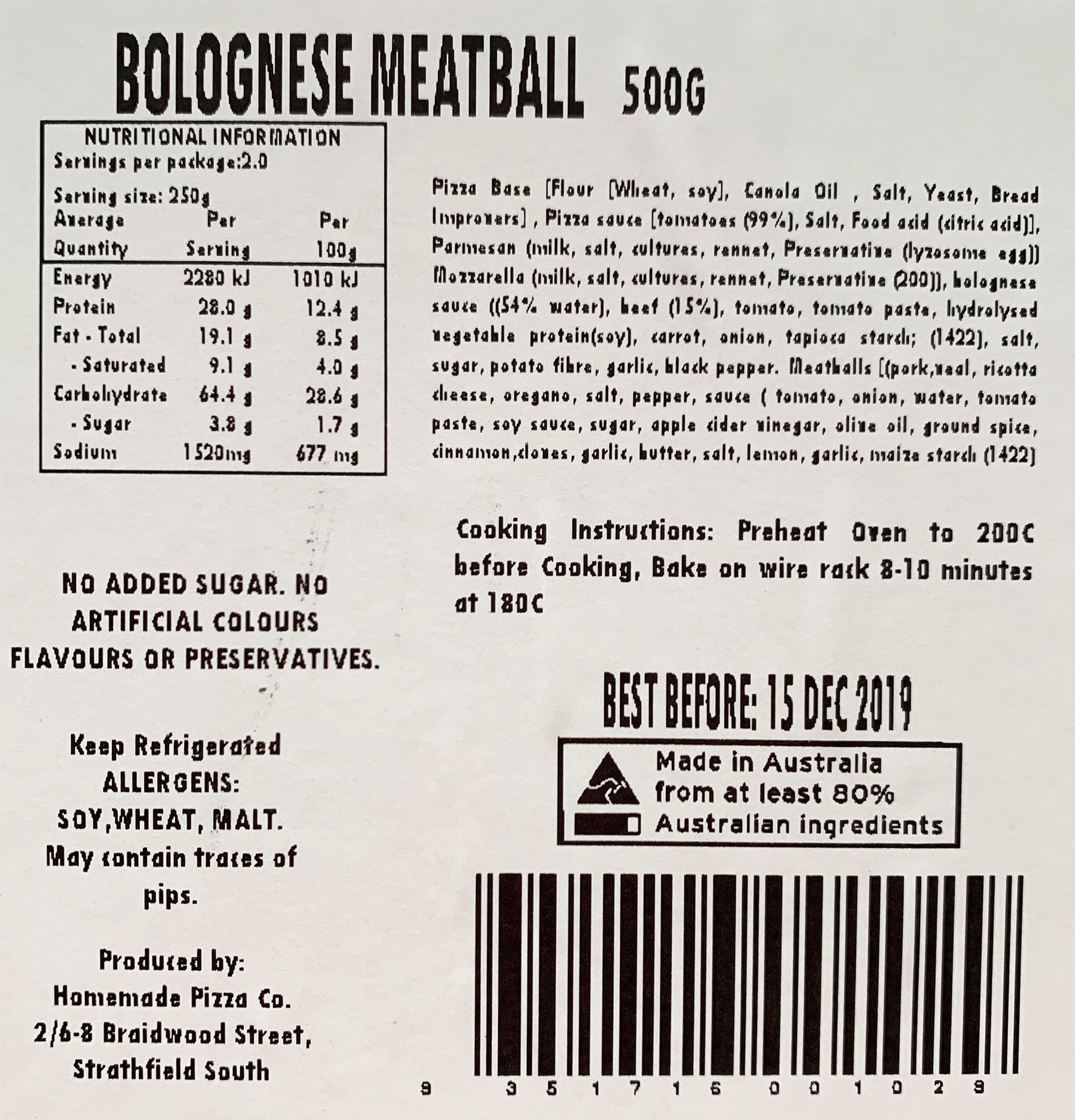 Homemade Pizza Co - Pizza - Bolognese Meatball (500g)