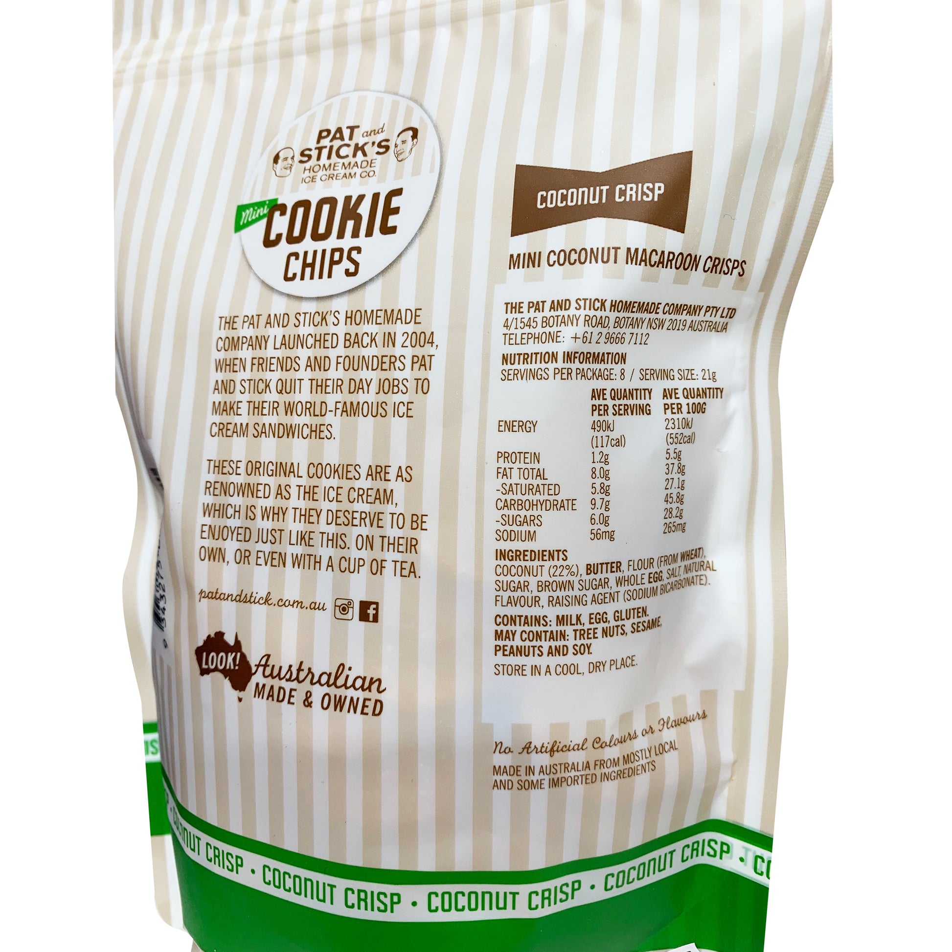 Pat and Stick's Homemade Mini Cookie Chips Coconut Crisp 170g