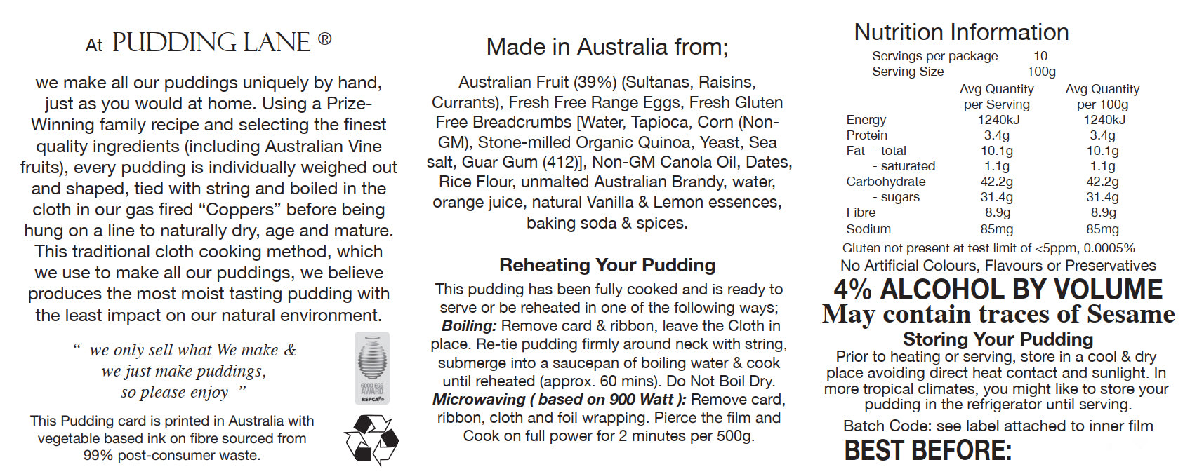 Indulge guilt-free with Pudding Lane's Gluten Free Pudding 1kg. Enjoy the rich, decadent flavors without the worry of gluten. Perfect for those with dietary restrictions or looking for a healthier dessert option. Treat yourself to a delicious pudding experience today!