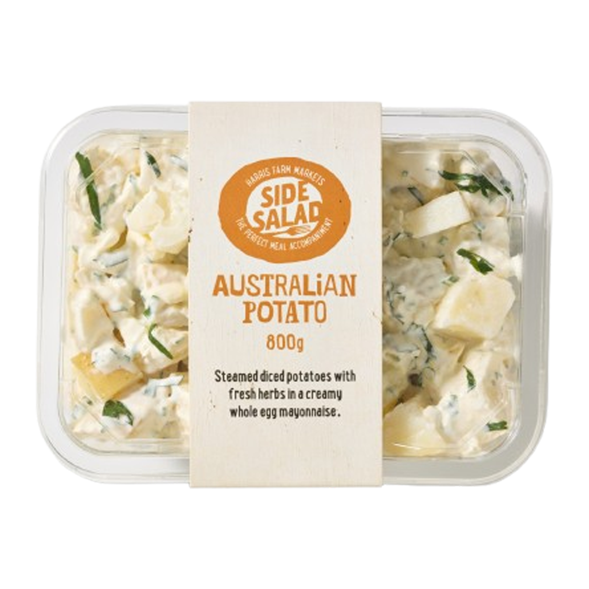 Enjoy the fresh and flavorful taste of Harris Farm Australian Potato Side Salad. Made with locally sourced ingredients, this 800g salad is the perfect side dish for any meal. Elevate your dining experience with this delicious and convenient salad option.