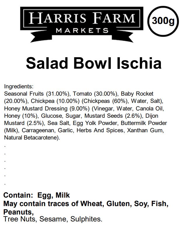 Freshen up your meals with Harris Farm Salad Ischia Salad 200g. Packed with vibrant flavors and nutrients, this salad is a delicious way to boost your health and satisfy your taste buds. Enjoy the convenience of a ready-to-eat salad that is perfect for a quick and nutritious meal.