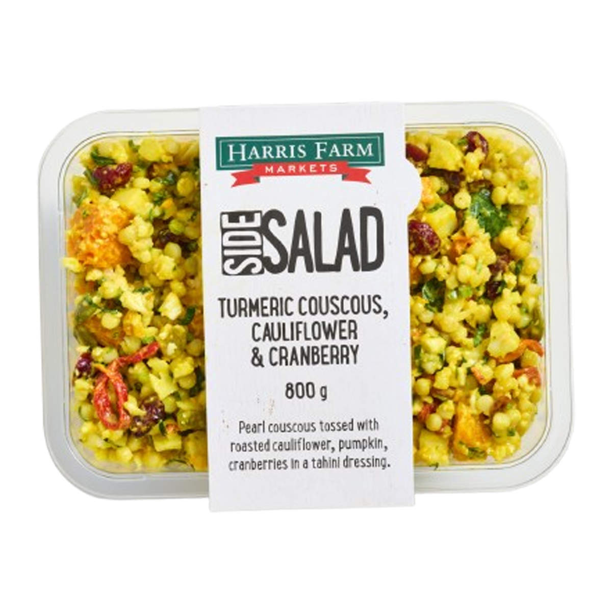 Harris Farm Turmeric Couscous Salad 800g: Enjoy a flavorful and nutritious meal packed with the anti-inflammatory benefits of turmeric. Perfect for a quick and healthy lunch or side dish. Order now for a delicious and convenient meal option.