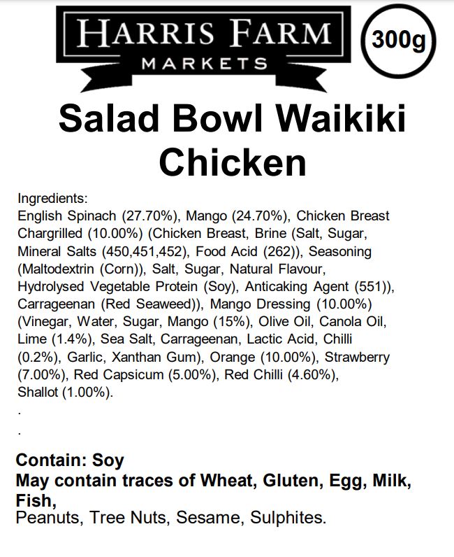 Enjoy a delicious and convenient meal with Harris Farm Salad Waikiki Chicken 300g. Packed with flavorful ingredients and tender chicken, this salad is a perfect choice for a quick and satisfying lunch or dinner. Order now for a fresh and healthy meal option that will leave you feeling satisfied and energized.