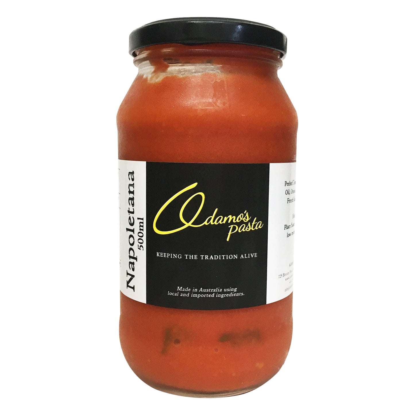 Adamo's Pasta Napoletana 500ml: Authentic Italian flavor in every bite. Elevate your dishes with our rich and savory tomato sauce, made with the finest ingredients. Perfect for pasta, pizza, and more. Experience the taste of Italy at home.