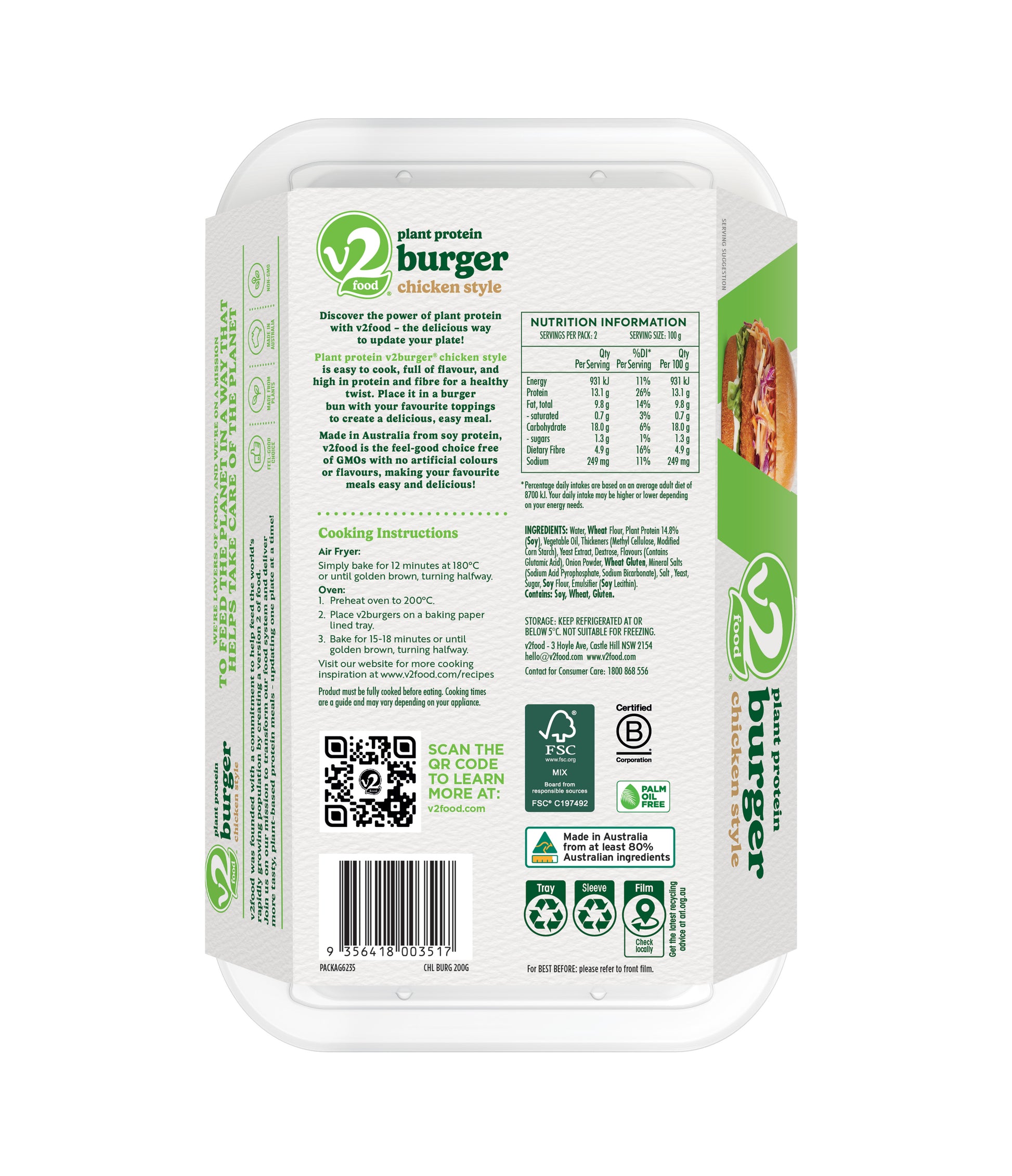 Enjoy a delicious and guilt-free meal with V2Food Vegan Chicken Style Burgers! Packed with plant-based goodness, these burgers are a perfect choice for a satisfying and healthy meal. Each pack contains two 250g burgers, making it convenient for a quick and tasty dinner option. Try them today and indulge in a flavorful vegan experience!