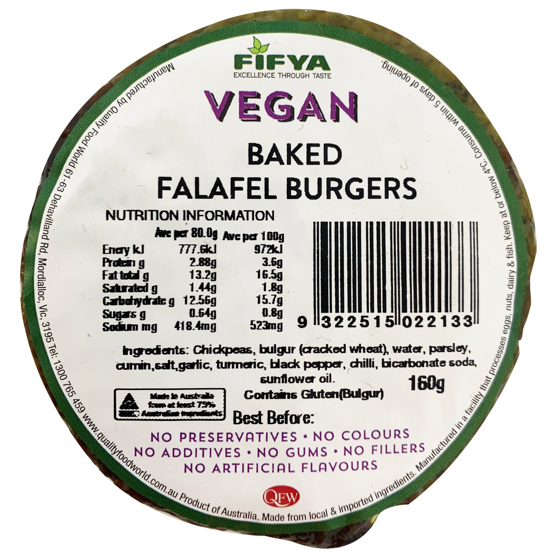 Fifya Vegan Baked Falafel Burgers x2 160g: Delicious plant-based burgers packed with flavor and protein. Enjoy a guilt-free meal that's easy to prepare and perfect for a quick, satisfying lunch or dinner. Try our vegan falafel burgers today for a tasty, healthy alternative that will leave you feeling energized and satisfied.