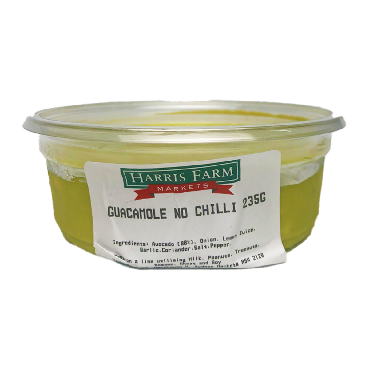 Enjoy the creamy goodness of Harris Farm Guacamole No Chilli 235g, made with ripe avocados for a rich and flavorful dip. Perfect for snacking, entertaining, or adding a delicious touch to your favorite dishes. Gluten-free and vegan-friendly.
