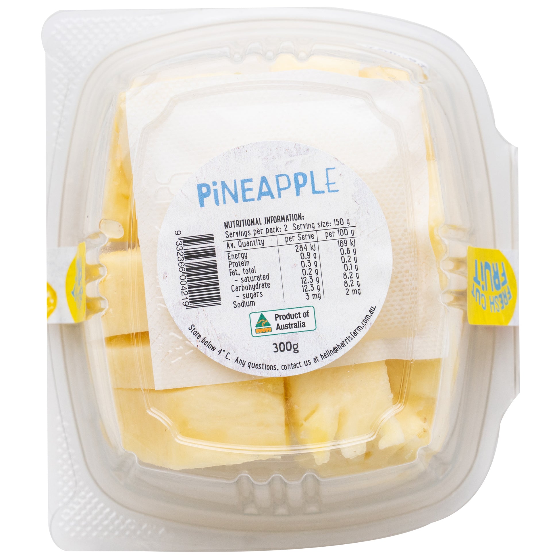 Enjoy the convenience of Harris Farm Pineapple Cut 300g - perfectly sliced and ready to elevate your dishes with a burst of tropical flavor. Ideal for quick meal prep and snacking, this premium product guarantees freshness and quality in every bite. Add a touch of sweetness to your recipes effortlessly with Harris Farm Pineapple Cut 300g.