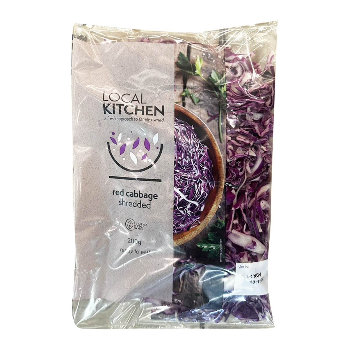 Fresh and convenient Local Kitchen Red Cabbage Shredded 200g - perfect for adding a nutritious and colorful touch to your meals. Enjoy the health benefits and vibrant flavor of locally sourced red cabbage in a convenient, ready-to-use pack. Ideal for salads, stir-fries, and more. Elevate your dishes with this fresh and flavorful ingredient.