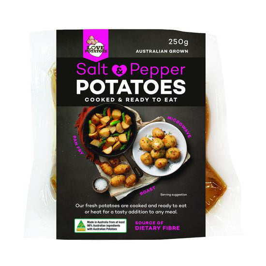 Elevate your culinary creations with the Love Potato Salt and Pepper 250g from Harris Farm Markets. Sourced from the finest ingredients, this exquisite blend promises unparalleled freshness and quality in every sprinkle. Crafted with care and precision, this seasoning duo adds a burst of flavor to your dishes, making it perfect for everyday meals or special occasions. Celebrate the provenance of these premium salts and peppers, knowing that each grain embodies the essence of nature's goodness. Whether you're a seasoned chef or a home cook, this versatile blend will effortlessly enhance the taste and texture of your favorite recipes. Trust Love Potato to deliver a touch of gourmet flair to your kitchen, creating memorable dining experiences for you and your loved ones.