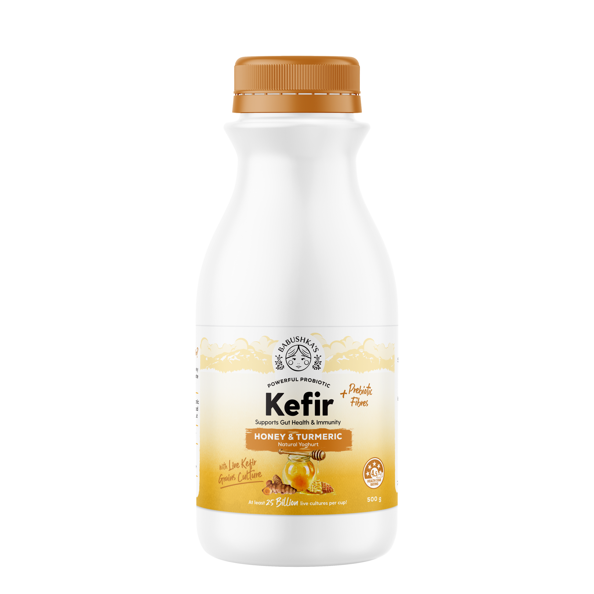 Experience the perfect blend of health and flavor with Babushka's Probiotic Kefir Natural Yoghurt Honey and Turmeric 500g. Packed with gut-friendly probiotics, immune-boosting turmeric, and the natural sweetness of honey, this delicious yogurt is a powerhouse of nutrition. Elevate your well-being with every spoonful of this creamy and nutritious treat.