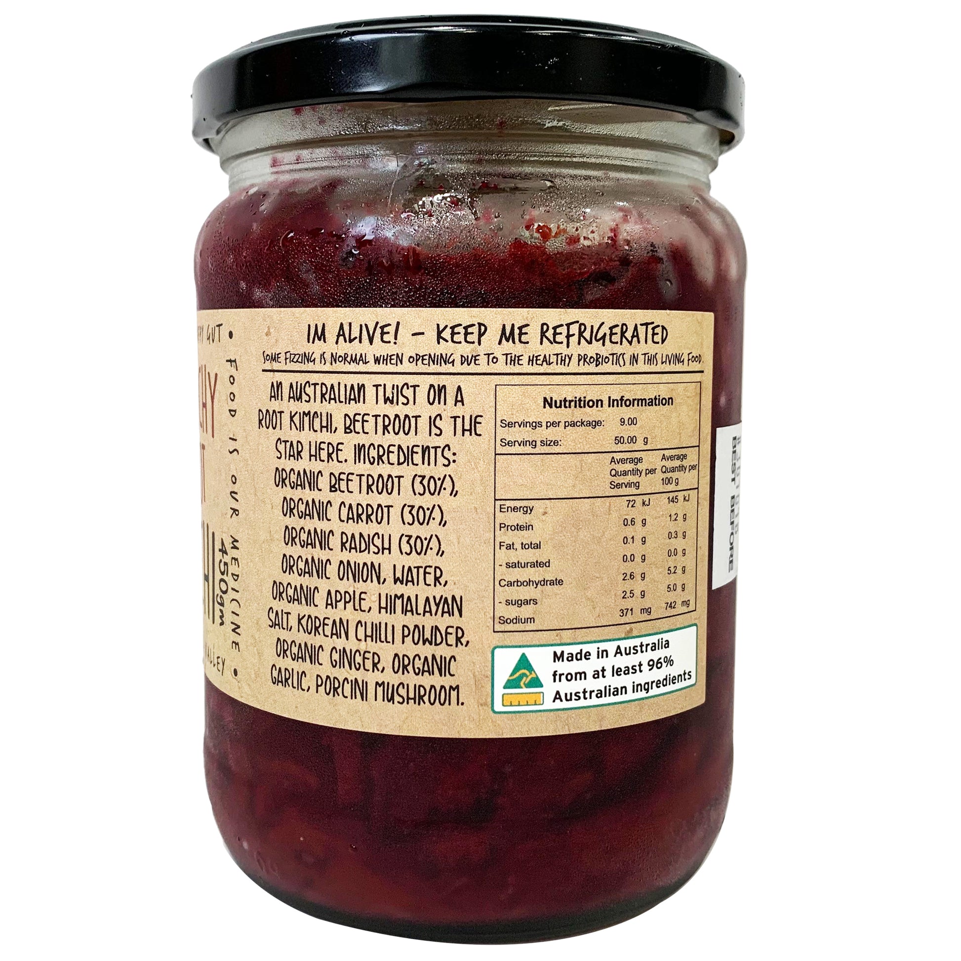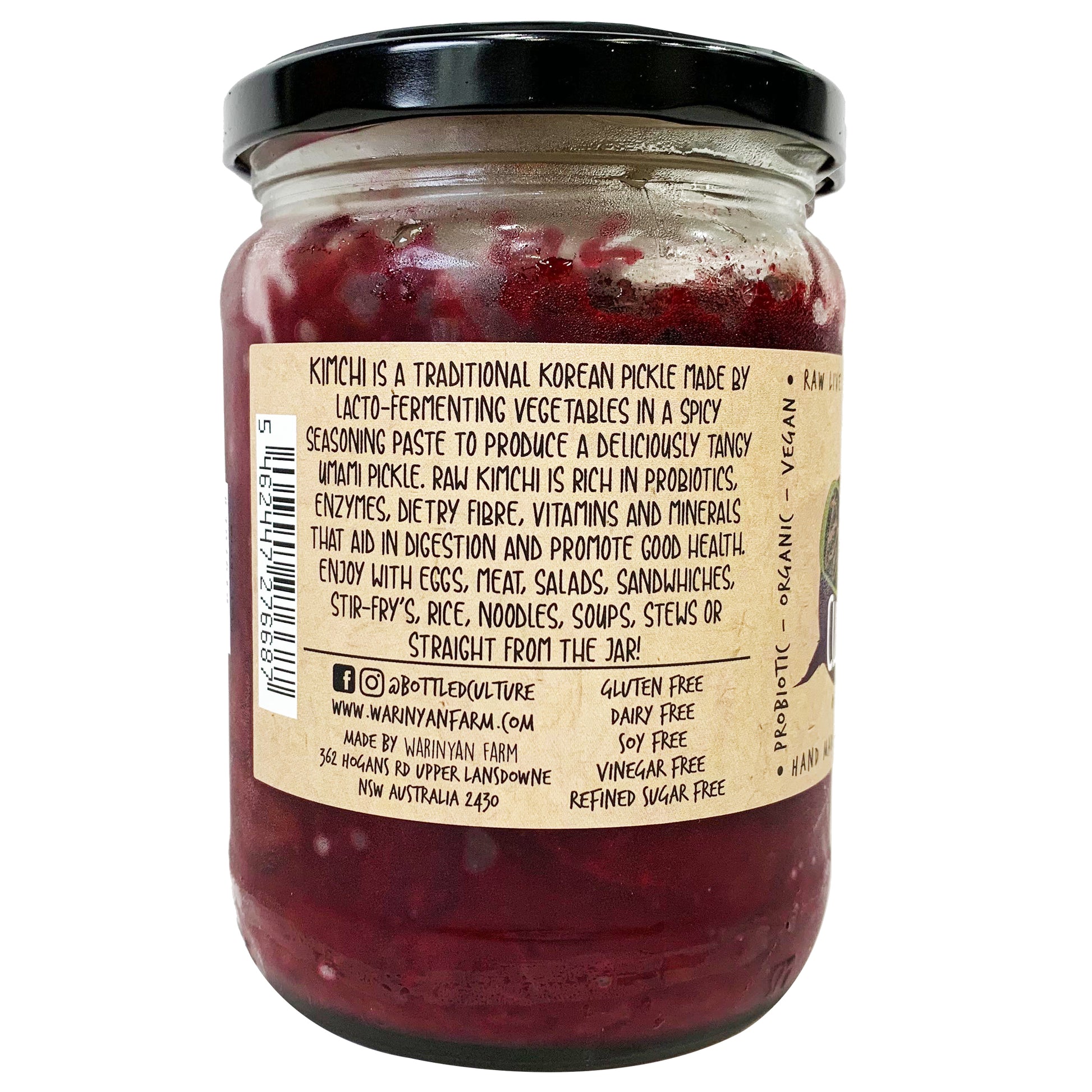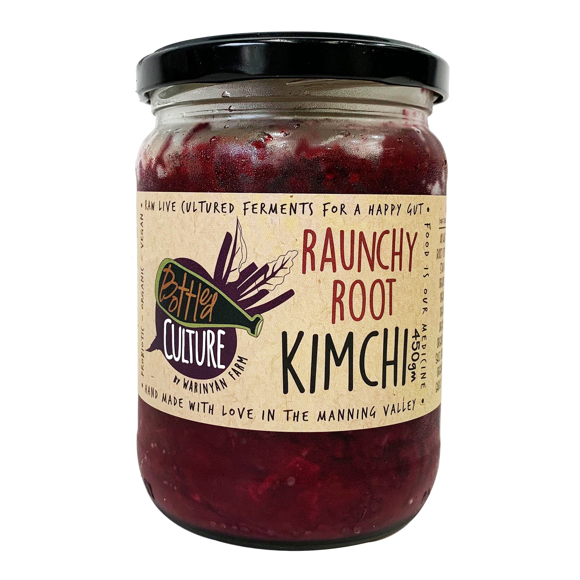 Bottled Culture Raunchy Root Kimchi 450g: Spicy, tangy, and packed with probiotics for gut health. Elevate your meals with this flavorful and nutritious Korean staple. Perfect for adding a kick to your dishes while supporting your digestive system.