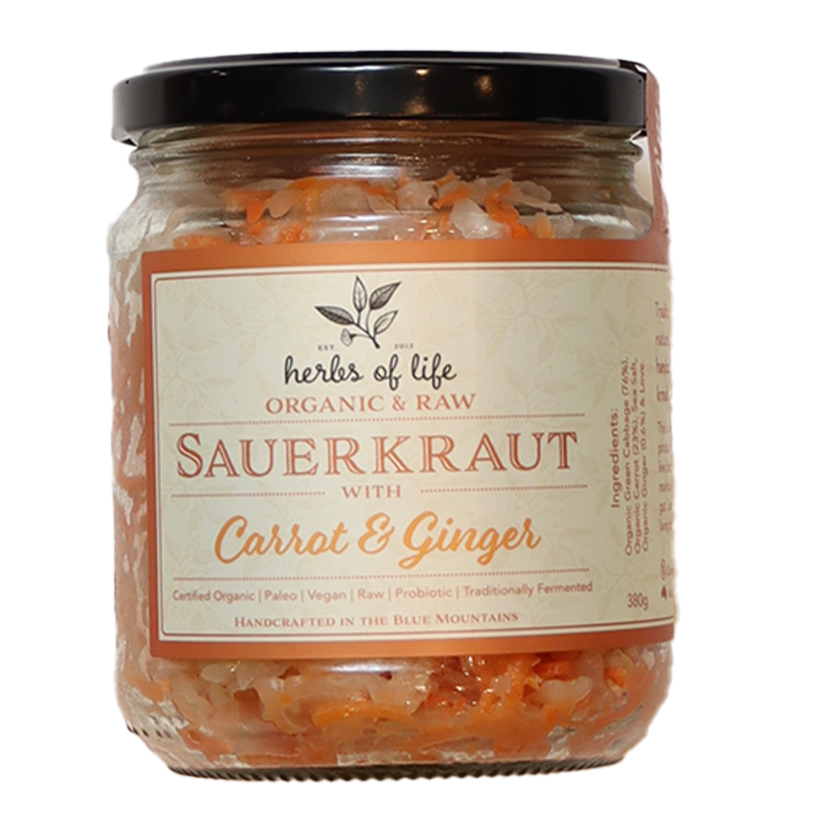 Herbs of Life Organic Sauerkraut Carrot & Ginger 380g