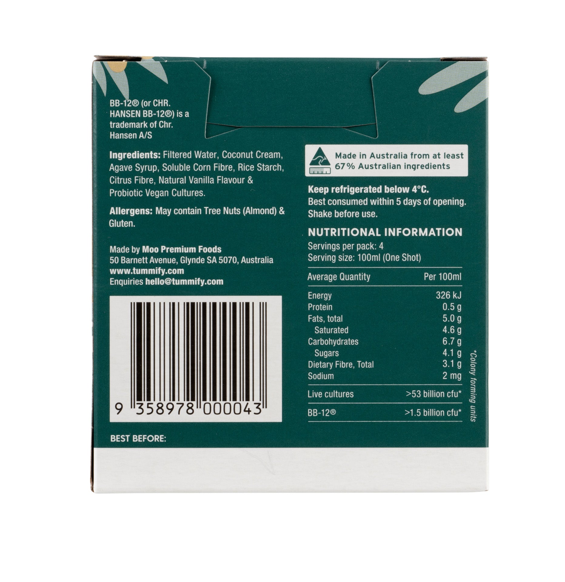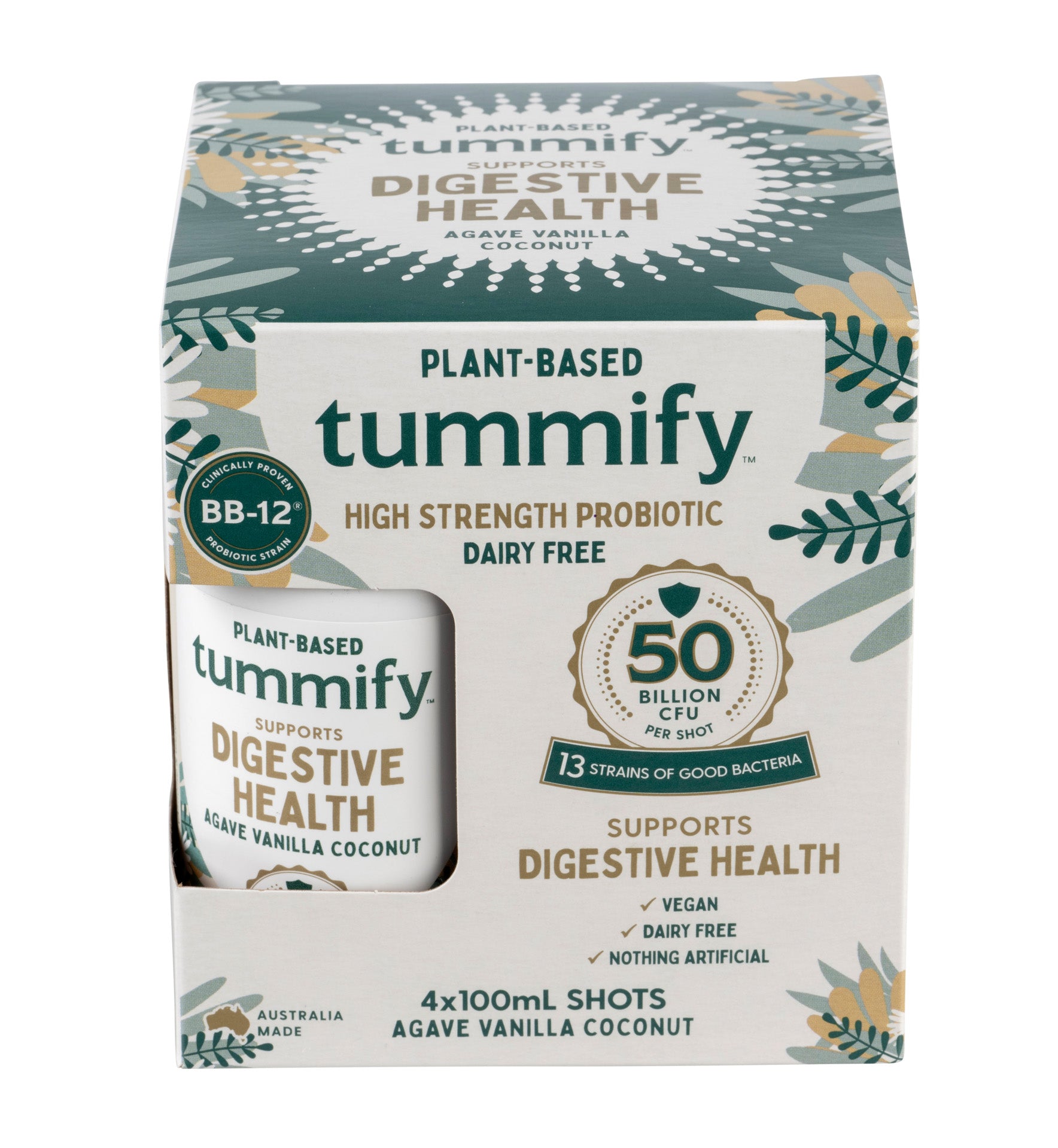 Tummify Plant Based High Strength Probiotic Shot Agave, Vanilla & Coconut 4 x 100ml