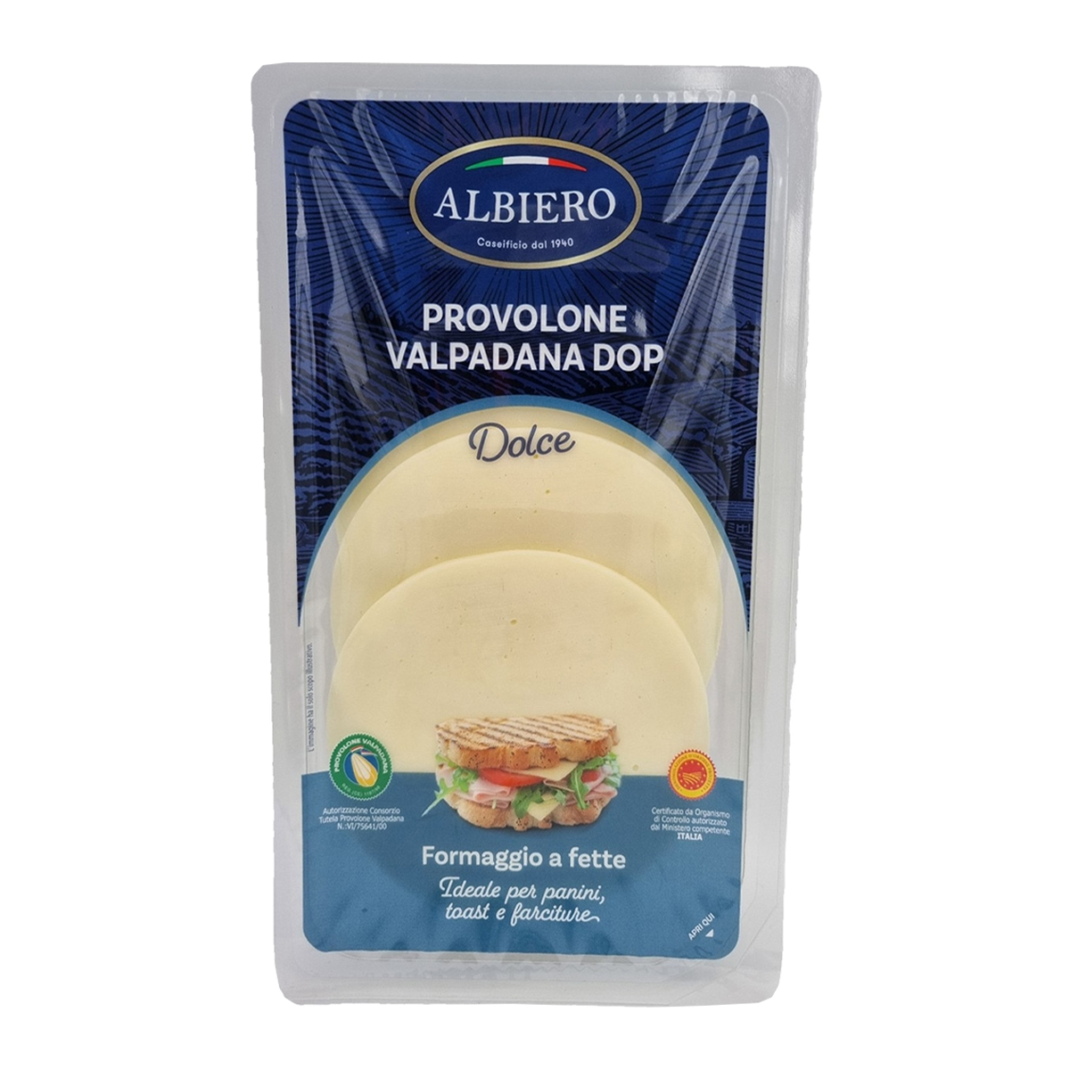 Albiero Provolone Dolce Slices Cheese 100g: Indulge in the rich, creamy flavor of our premium Provolone Dolce slices. Perfect for sandwiches, charcuterie boards, or snacking on the go. Elevate your meals with this high-quality, versatile cheese.