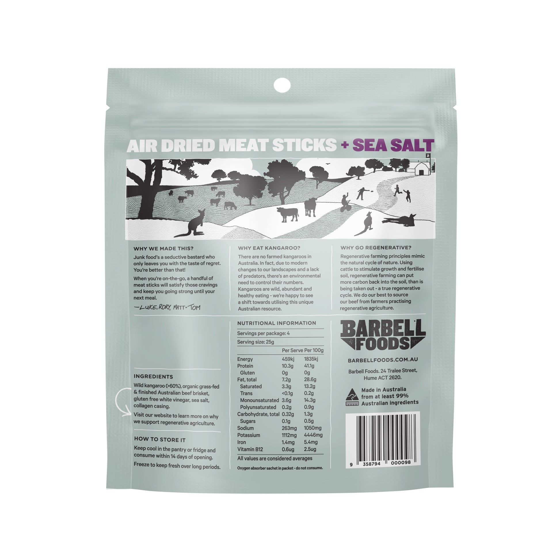 Barbell Foods Sea Salt Meat Sticks 100g are a protein-packed snack that will satisfy your cravings while fueling your body with high-quality ingredients. Made with premium cuts of meat and seasoned with sea salt, these meat sticks are the perfect on-the-go snack for anyone looking to boost their energy levels and stay satisfied throughout the day. Enjoy the delicious taste and convenience of Barbell Foods Sea Salt Meat Sticks 100g wherever you go!