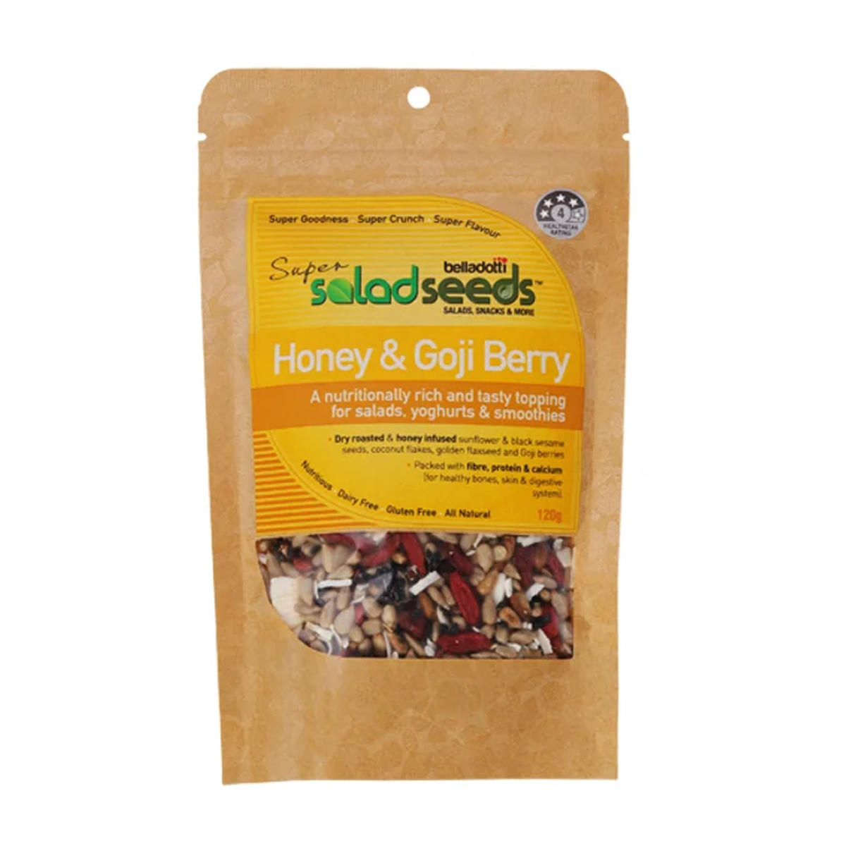 Start your day with a burst of freshness and vitality with our Belladotti Honey and Goji Berry Breakfast Toppers 120g. Sourced from the finest beekeepers and farms, these delightful toppers bring a touch of nature's goodness to your breakfast bowl. Elevate your mornings with the premium quality of handpicked goji berries and pure honey, adding a sweet and tangy flavor to your favorite dishes. Crafted with care and dedication, each bite is a testament to our commitment to providing you with the best. Perfect for yogurt, oatmeal, or smoothie bowls, these breakfast toppers are a versatile addition to your daily routine. Experience the essence of nature in every spoonful and join our community of food lovers who appreciate the true taste of quality ingredients.