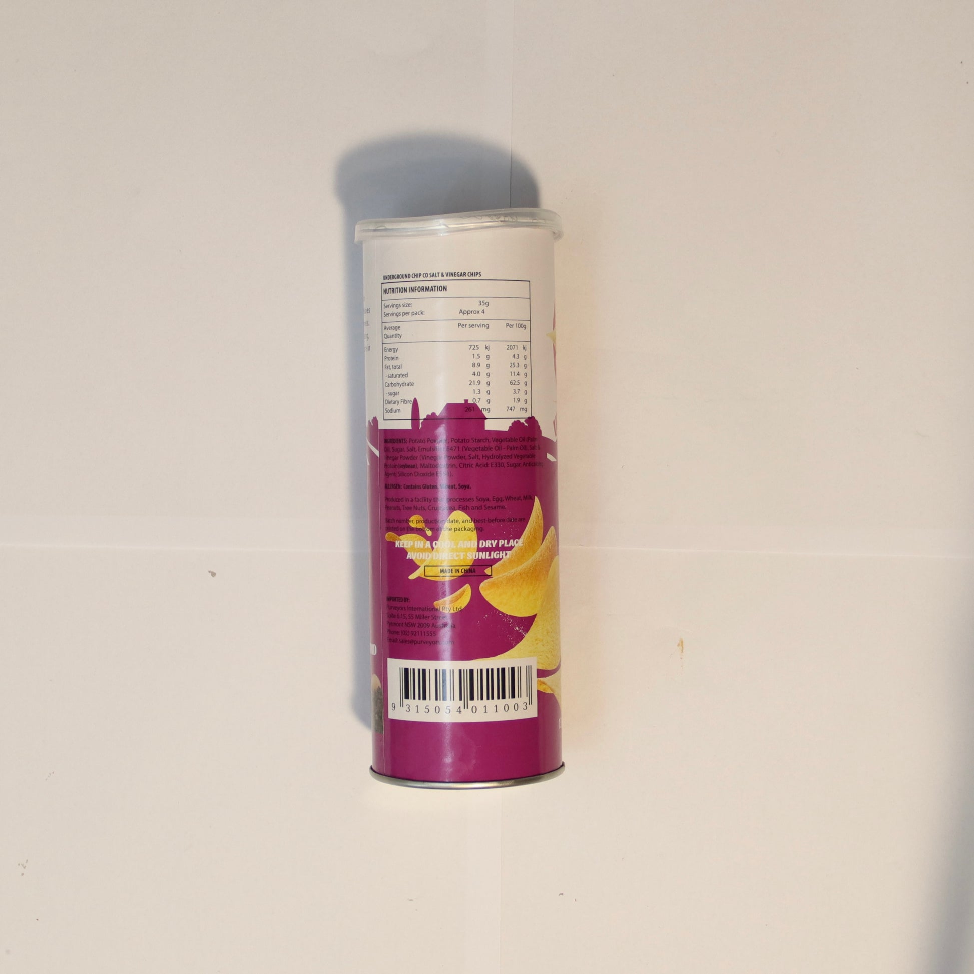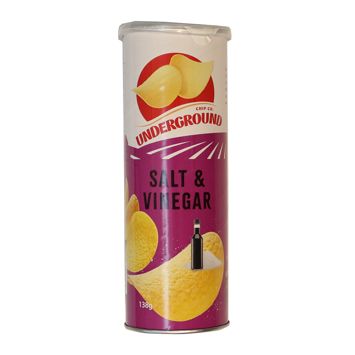 Satisfy your cravings with Underground Chip Co Salt & Vinegar Chips 138g. Made with premium ingredients for a bold and tangy flavor explosion. Perfect for on-the-go snacking or sharing with friends. Upgrade your snack game with these irresistible chips today!