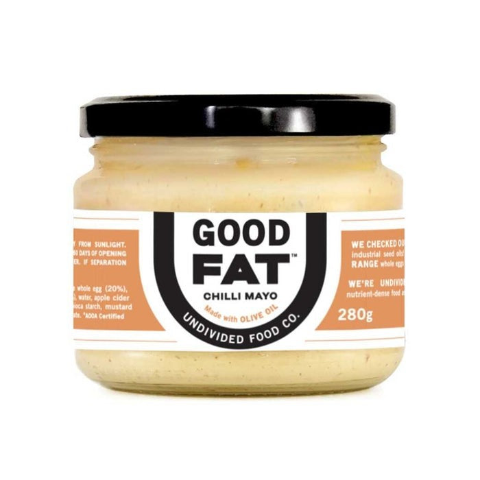Undivided Food Co Good Fat Chilli Mayo 280g is a delicious and healthy condiment that adds a spicy kick to your favorite dishes. Made with high-quality ingredients, this mayo is rich in good fats and free from artificial additives. Elevate your meals with this flavorful and nutritious chili mayo that is perfect for those looking to add a healthy twist to their diet.