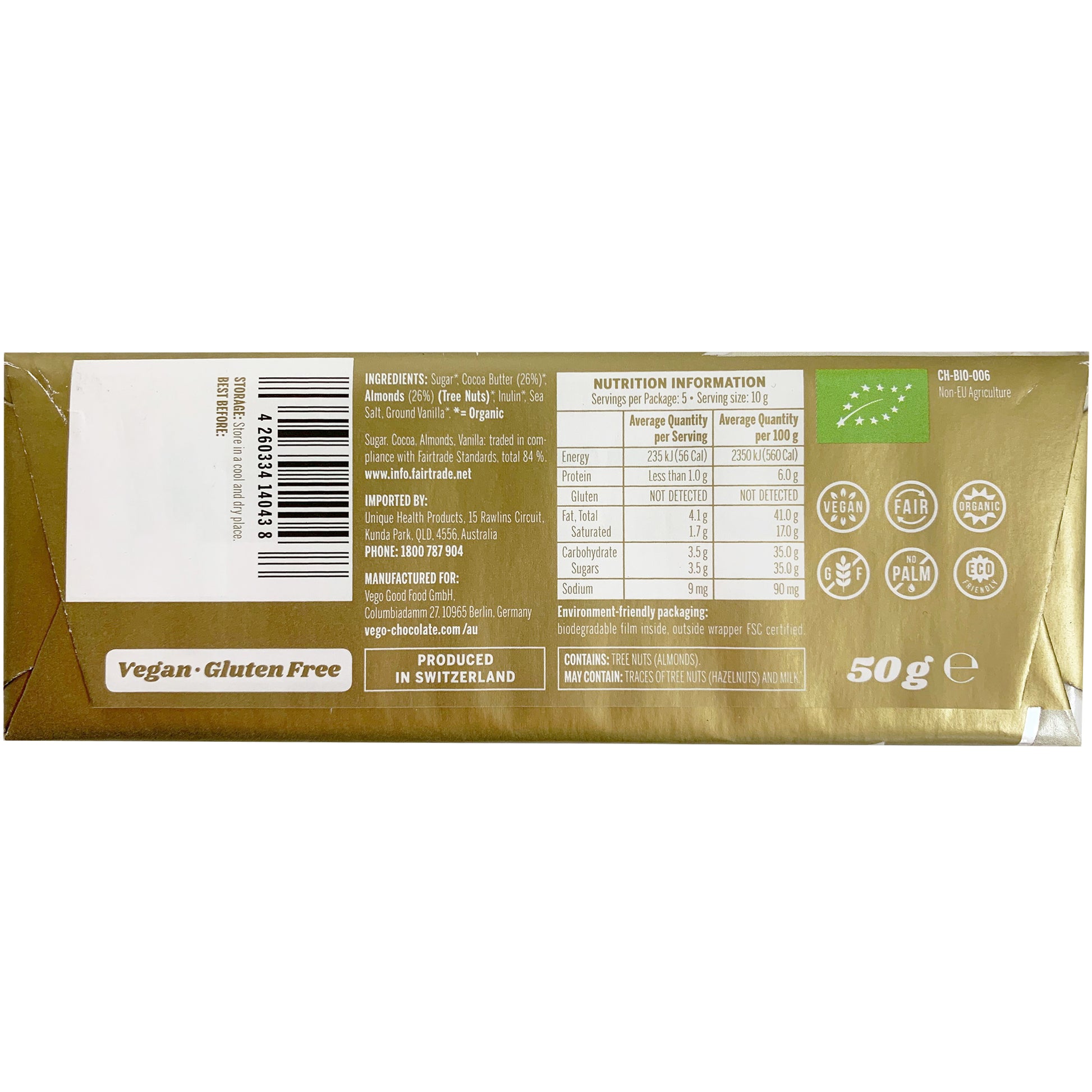 Indulge in the creamy sweetness of Vego Almond Bliss White Chocolate Bar. Made with premium ingredients, this 50g treat offers a guilt-free way to satisfy your cravings. Perfect for vegans and those with a sweet tooth, this delicious bar is sure to delight your taste buds.