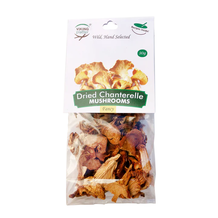 Viking Platter Dried Chanterelle Mushrooms 20g: Elevate your dishes with premium quality chanterelle mushrooms. Packed with rich flavor and nutrients, these dried mushrooms are perfect for gourmet cooking. Enhance your culinary creations with ease and impress your guests every time.