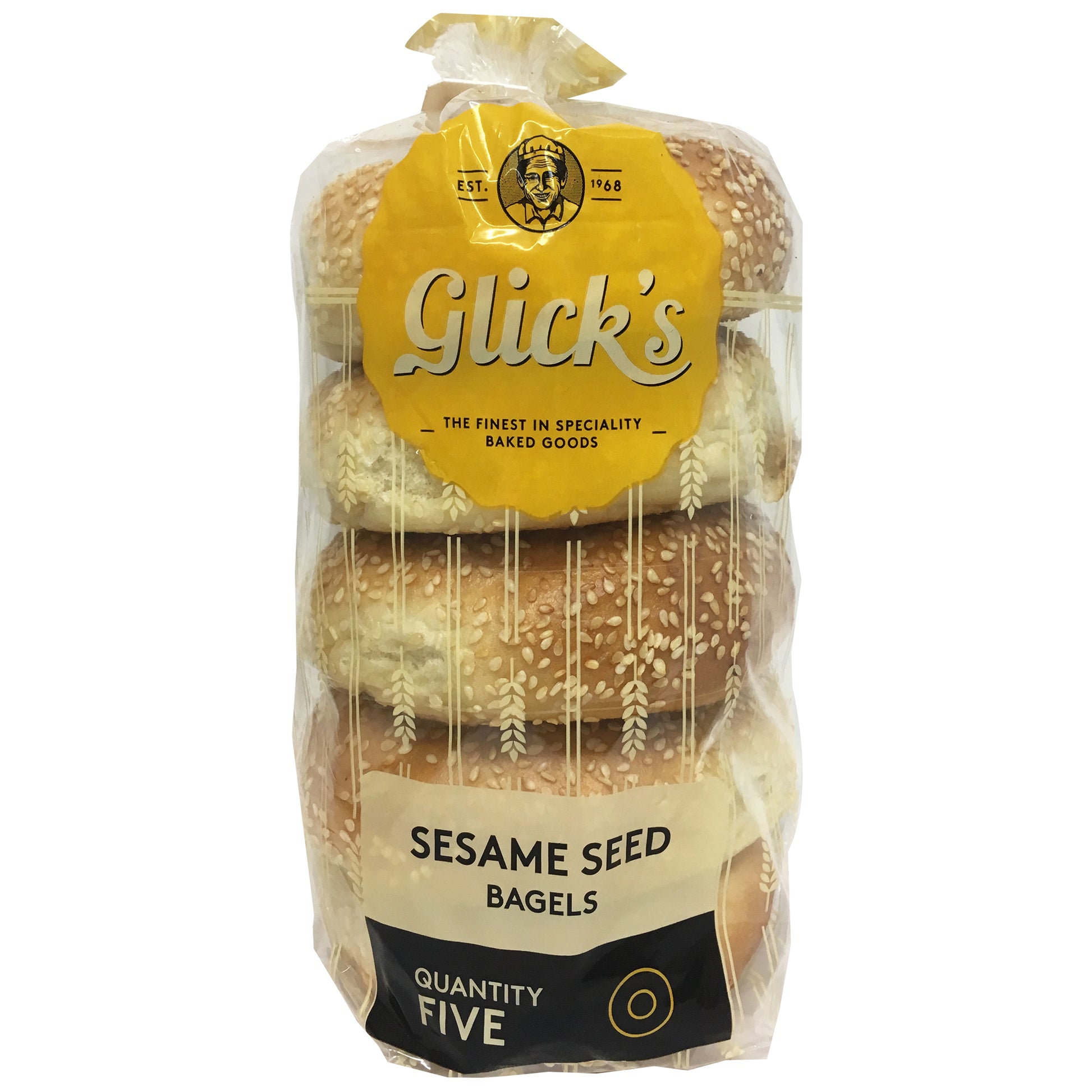 Freshly baked Glicks Sesame Seed Bagels x5 - a delicious way to start your day with a satisfying crunch. Enjoy the perfect blend of soft, chewy texture and nutty sesame flavor in every bite. Elevate your breakfast or snack time with these authentic New York-style bagels. Order now for a taste of tradition delivered to your doorstep.