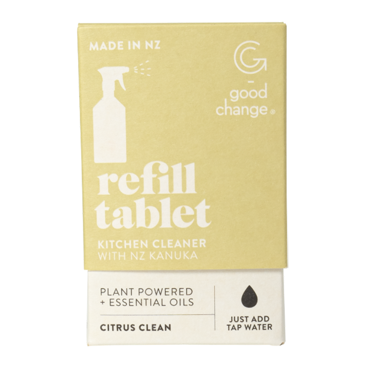Elevate your kitchen care routine with the Good Change Kitchen Cleaner Refill Tablet. Designed to effortlessly dissolve into a powerful, eco-conscious cleaner, this tablet offers a sophisticated solution to maintaining a spotless, fresh kitchen. Its compact form reduces waste and packaging, making it an elegant choice for those committed to both cleanliness and sustainability. Experience effective cleaning without compromise.