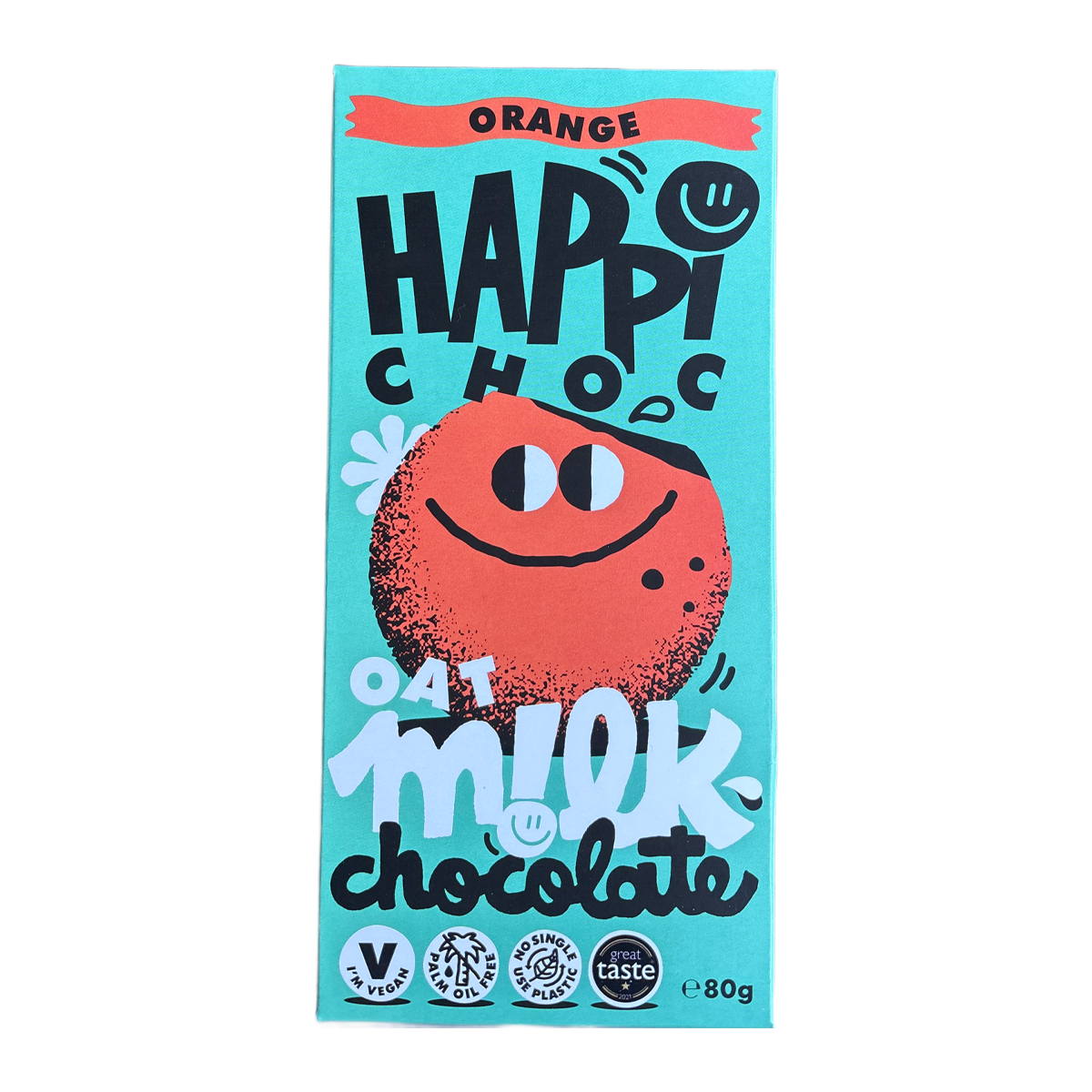 Indulge guilt-free with Happi Oat Orange Oat Milk Chocolate 80g. Savor the rich, creamy taste of oat milk chocolate infused with zesty orange flavor. Packed with wholesome oats for a satisfying treat that's vegan-friendly and gluten-free. Perfect for a delicious and energizing snack on the go.