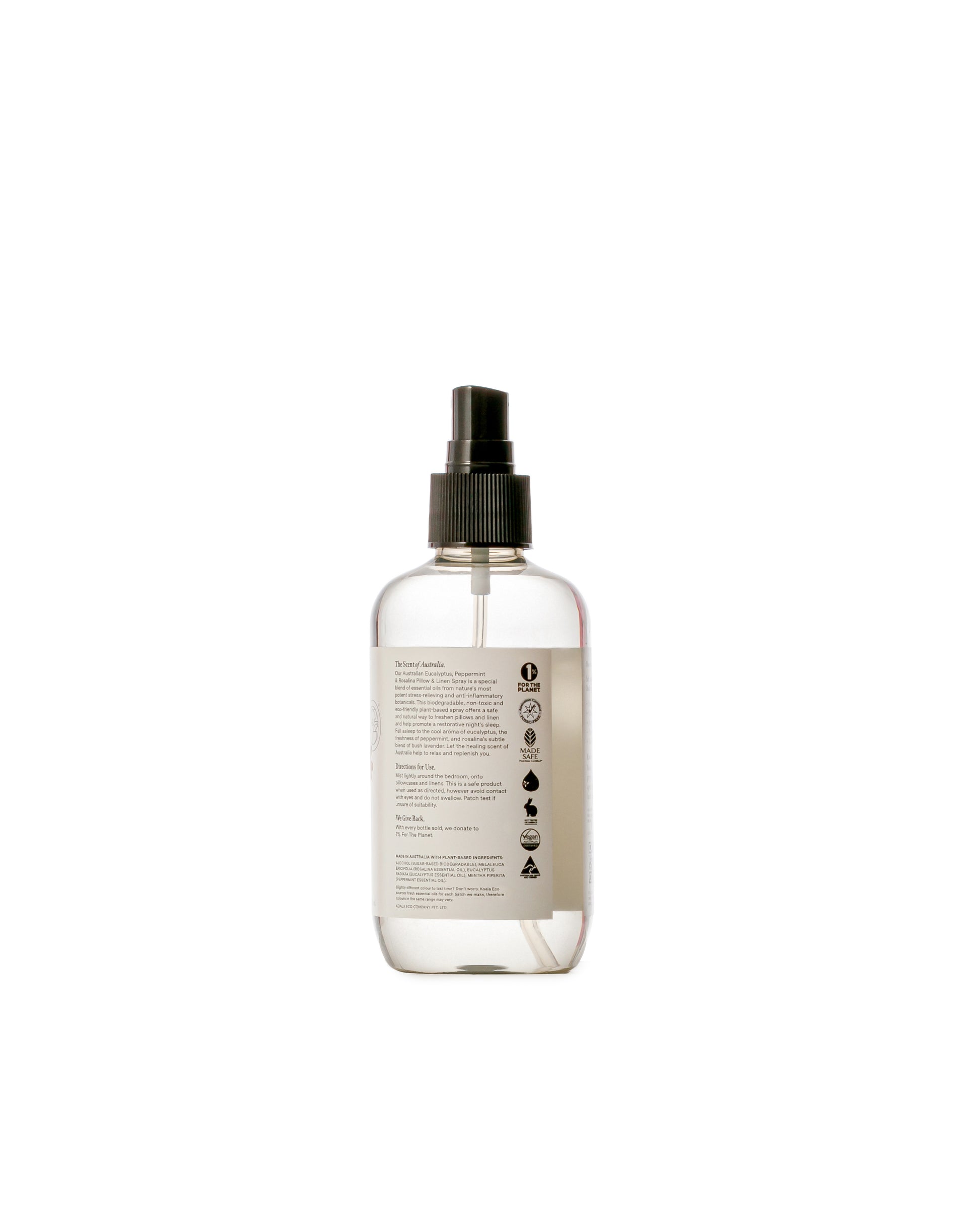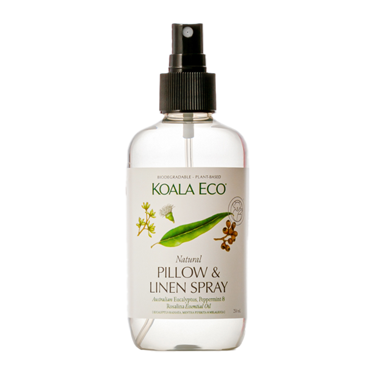 Koala Eco Pillow and Linen Spray 250ml: Experience deep relaxation and a refreshing sleep with our all-natural, eco-friendly spray. Infused with calming eucalyptus and refreshing peppermint, this spray will transform your bedroom into a tranquil oasis. Say goodbye to restless nights and hello to a peaceful slumber. Try it now for a rejuvenating sleep experience.