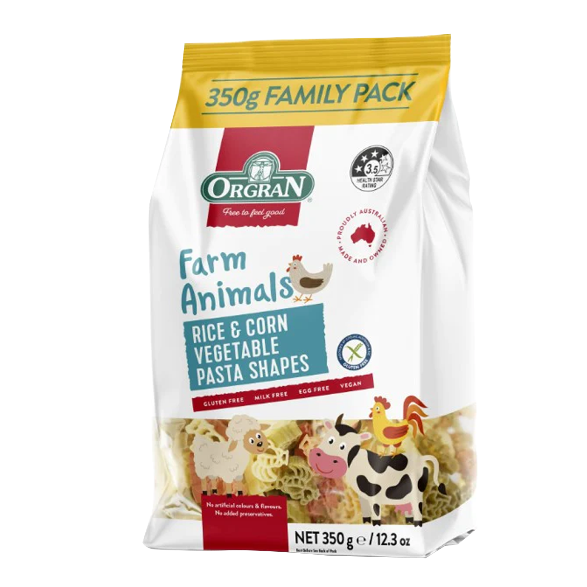 Orgran Gluten Free Pasta Farm Animals 350g is a delicious and fun way to enjoy pasta without gluten. Made with high-quality ingredients, this pasta is perfect for those with dietary restrictions. Bring joy to mealtime with these cute farm animal shapes that are sure to delight both kids and adults. Enjoy a tasty and wholesome meal with Orgran Gluten Free Pasta Farm Animals 350g.