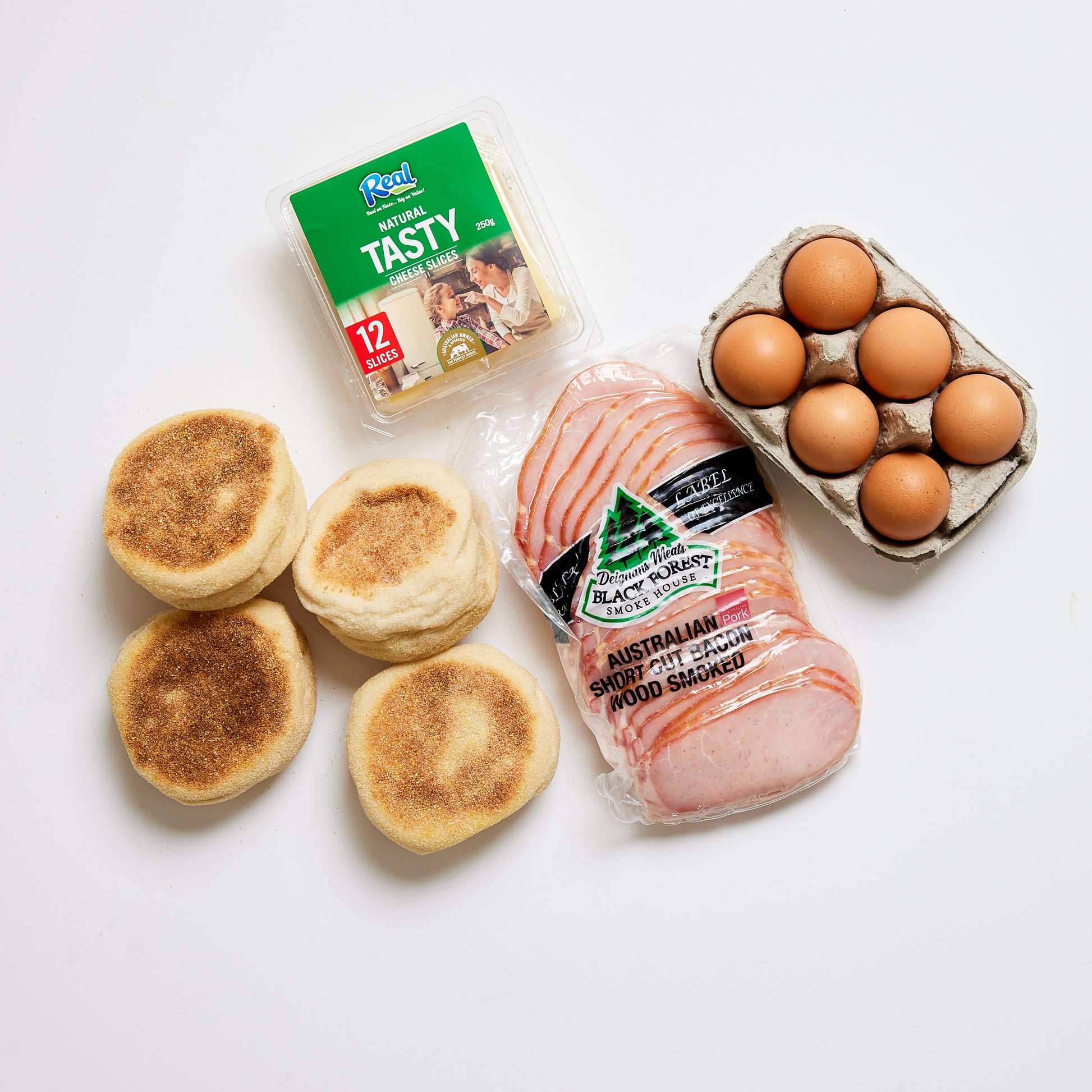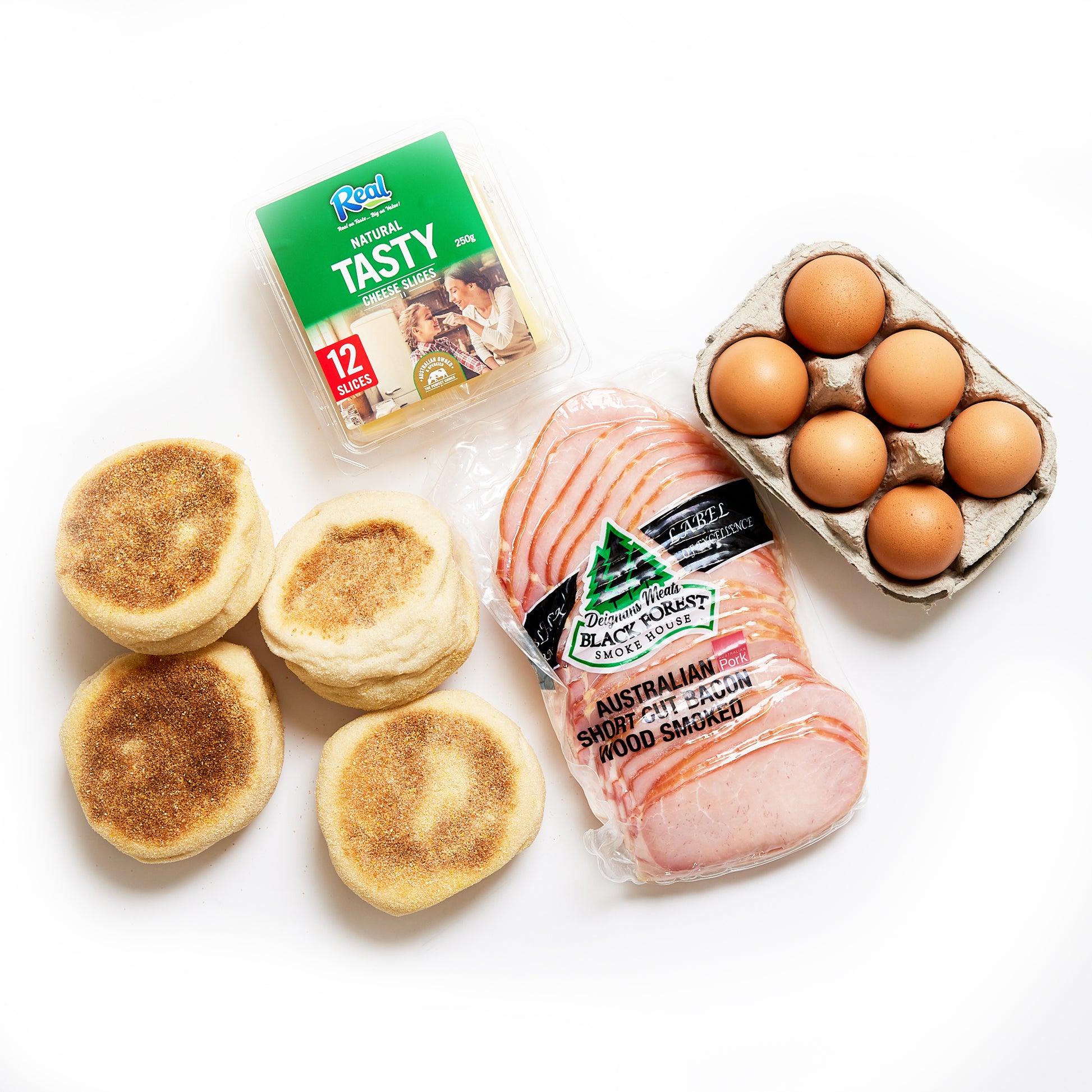 5. Place in the sandwich press for 4-5mins until cheese is melted and the muffins are golden brown.