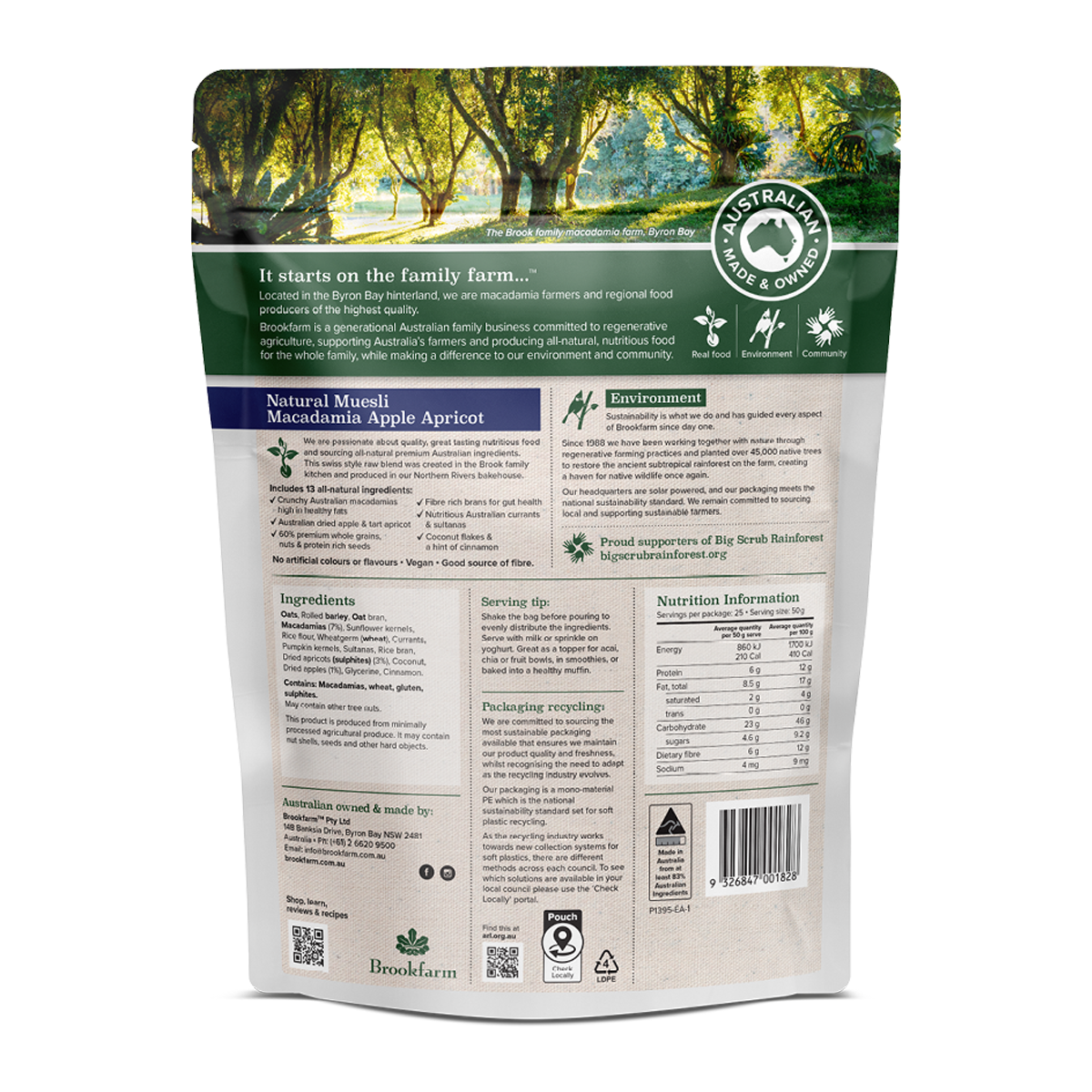 Brookfarm Natural Muesli Macadamia Apple and Apricot