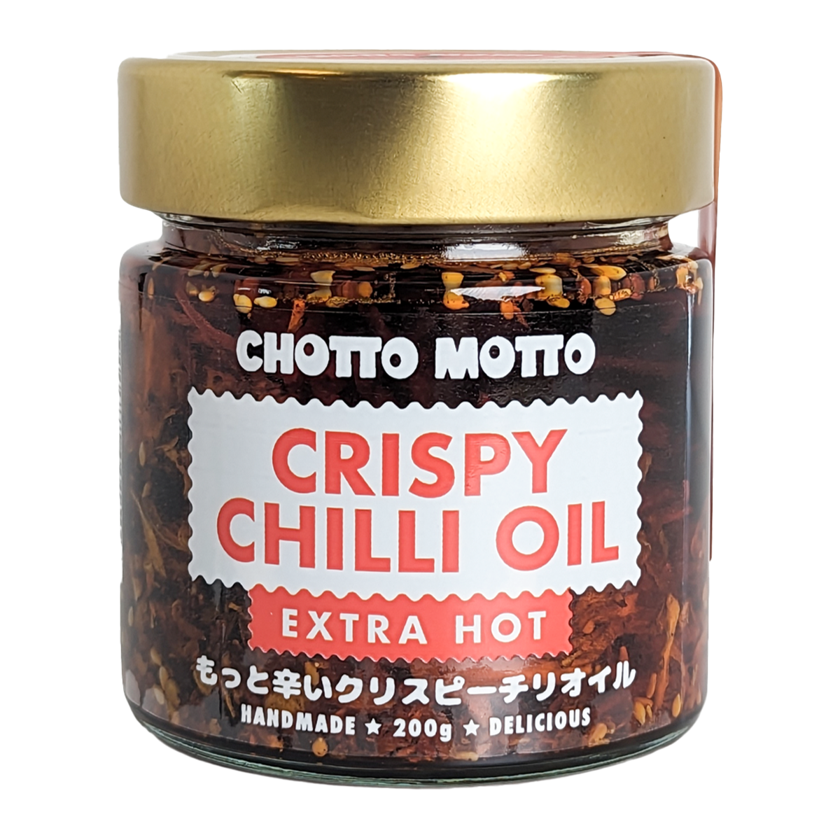 Chotto Motto Extra Hot Crispy Chilli Oil 200g adds a fiery kick to your favorite dishes. Elevate your meals with this premium, handcrafted chili oil made with high-quality ingredients. Perfect for spice lovers looking to take their dishes to the next level.