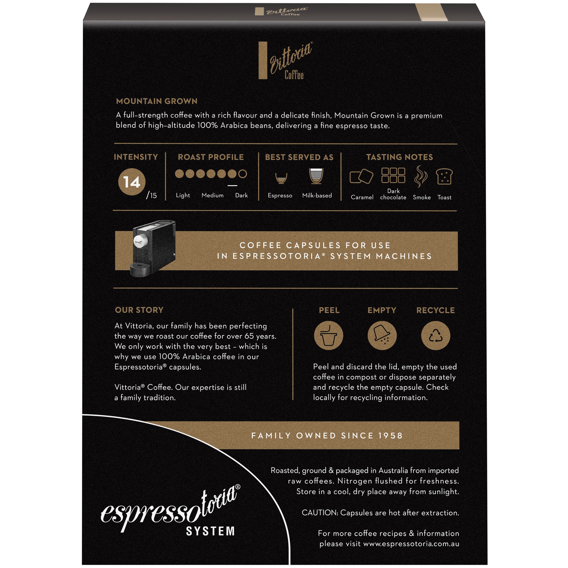 Indulge in rich and aromatic espresso with Vittoria Coffee Capsules Mountain Grown. Specially crafted for the Espressotoria System, these capsules deliver a premium coffee experience with every brew. Elevate your mornings with the perfect balance of flavor and convenience.