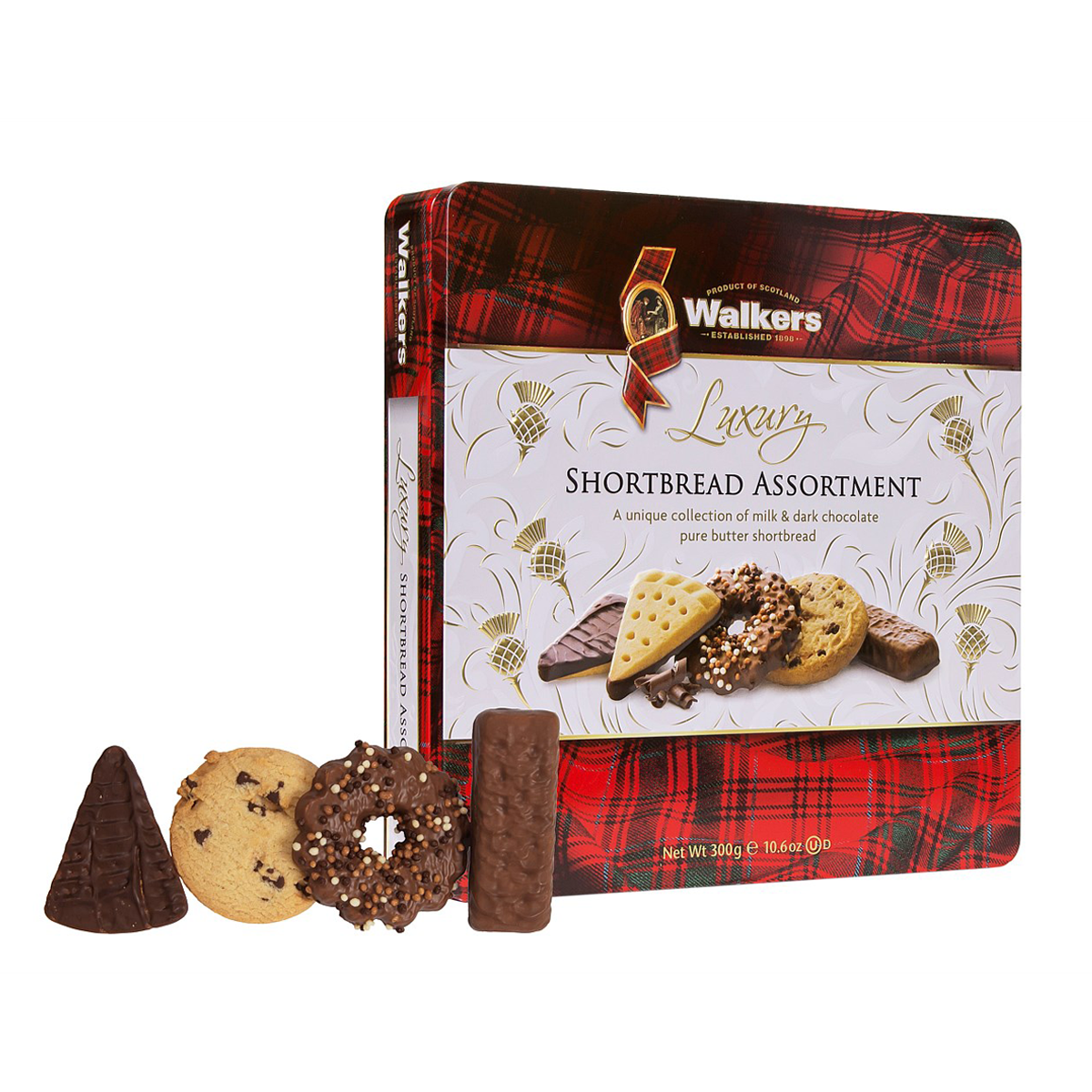 Indulge in the rich and buttery goodness of Walkers Shortbread Luxury Assorted Chocolate Tin. This 300g tin is filled with a delightful selection of premium chocolates, perfect for gifting or treating yourself. Enjoy the perfect blend of buttery shortbread and luxurious chocolate in every bite. Elevate your snacking experience with Walkers Shortbread Luxury Assorted Chocolate Tin.