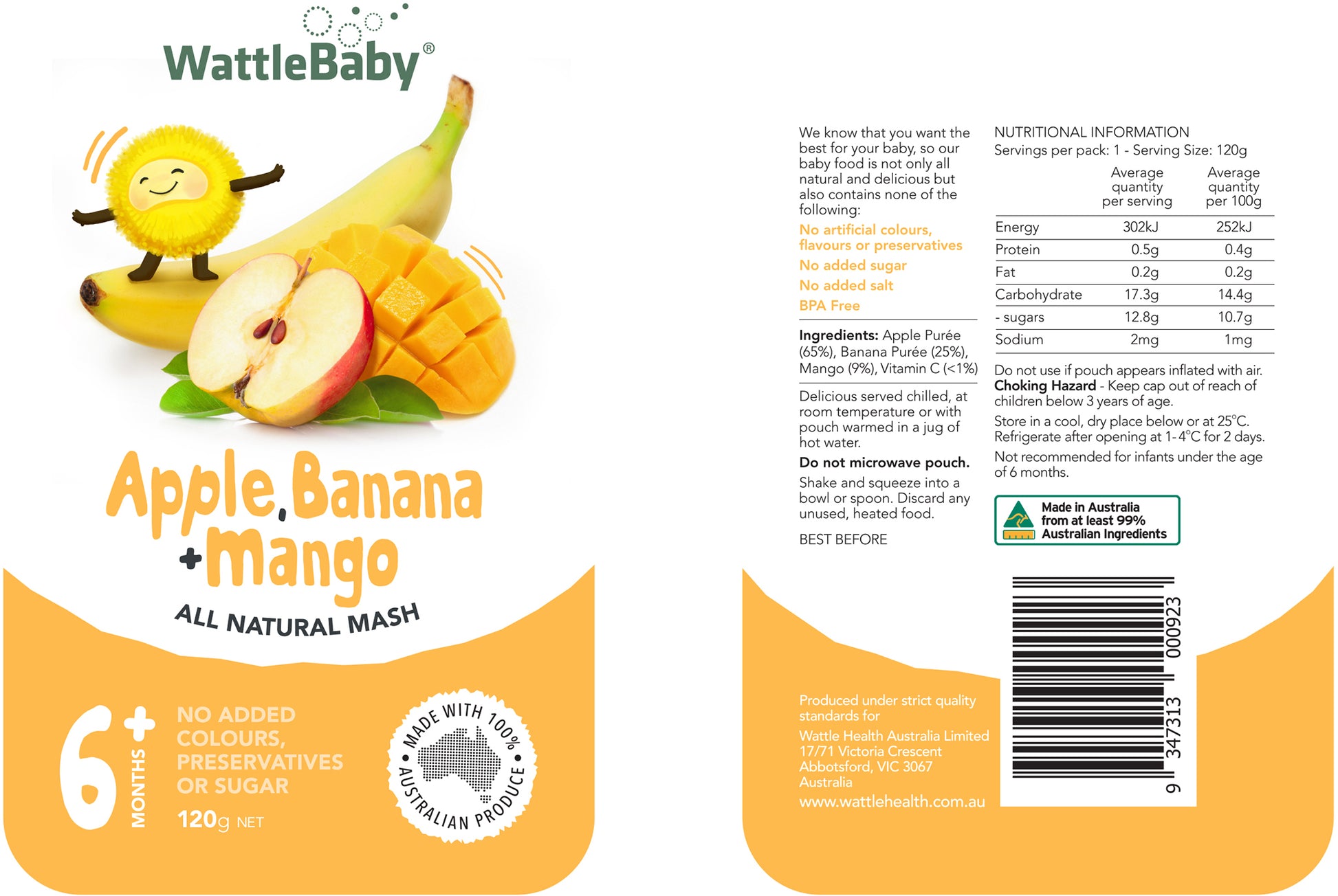 WattleBaby - Natural Baby Food - Apple, Banana and Mango