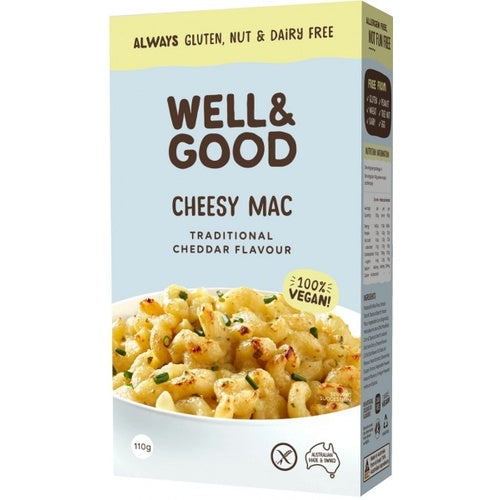 Indulge guilt-free with Well and Good Vegan Cheesy Macaroni and Cheddar 110g. Savor the rich, creamy taste of cheddar without any animal products. Quick and easy to prepare, this delicious meal is perfect for busy days. Enjoy a satisfying and flavorful vegan macaroni experience that will leave you craving more.