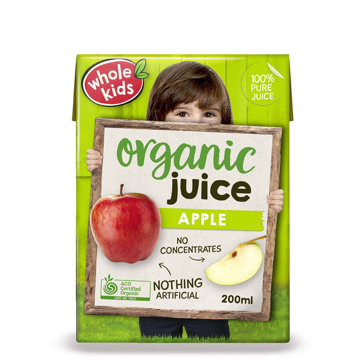 Whole Kids Organic Apple Juice 200ml: Pure, natural refreshment for your little ones. Made with 100% organic apples, our juice is free from artificial additives and preservatives, ensuring a healthy and delicious drink every time. Give your child the best with Whole Kids Organic Apple Juice.