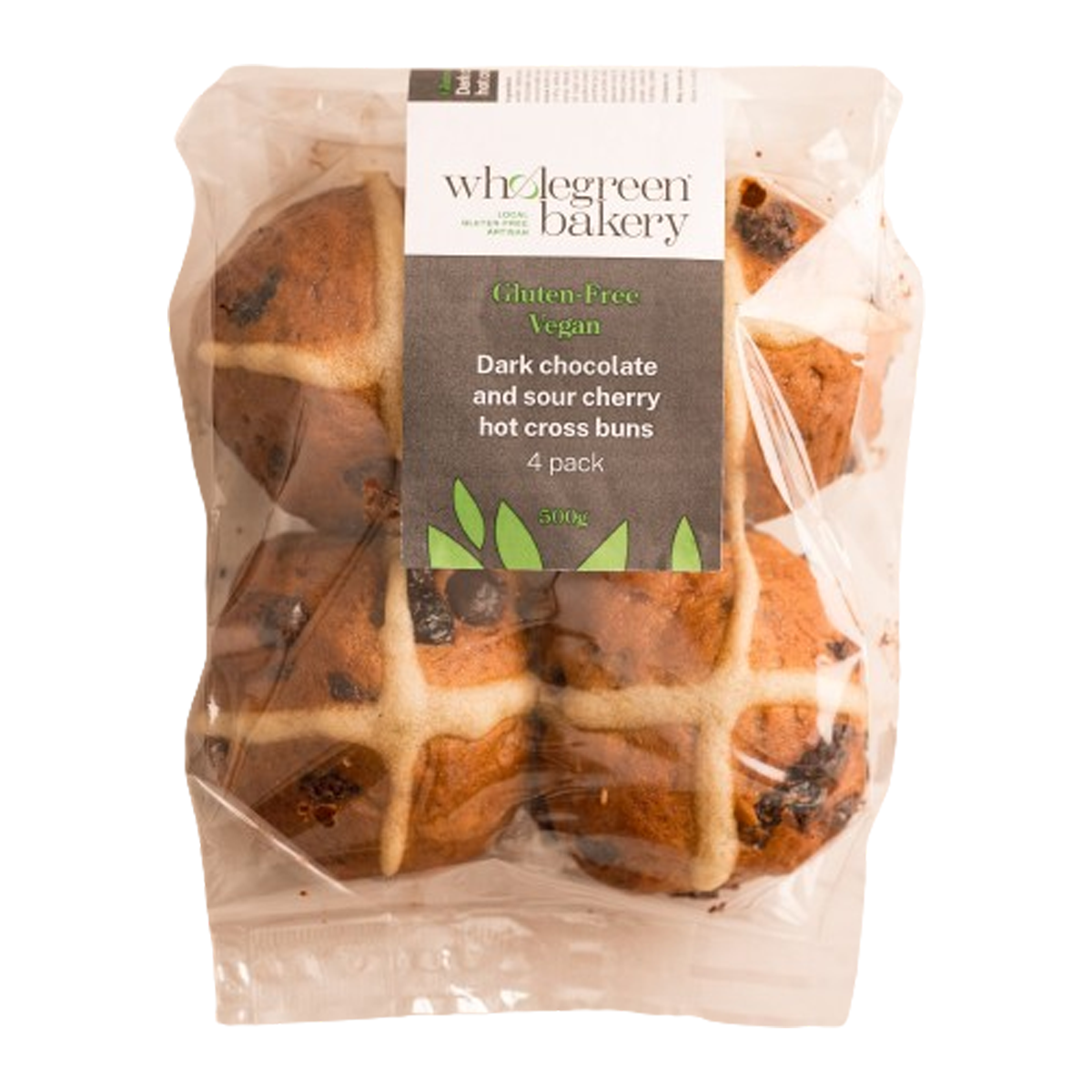 Wholegreen Bakery Gluten Free Vegan Chocolate & Sour Cherry Hot Cross Buns 4 Pack 500g