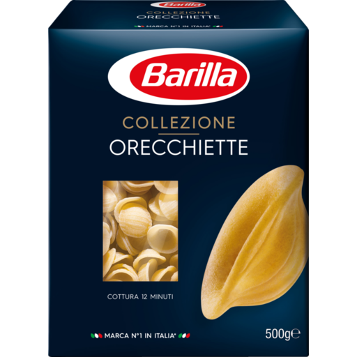 Barilla Collezione Orecchiette 500g: Elevate your pasta dishes with authentic Italian orecchiette. Made with high-quality ingredients for a delicious and satisfying meal. Perfect for creating gourmet dishes at home.