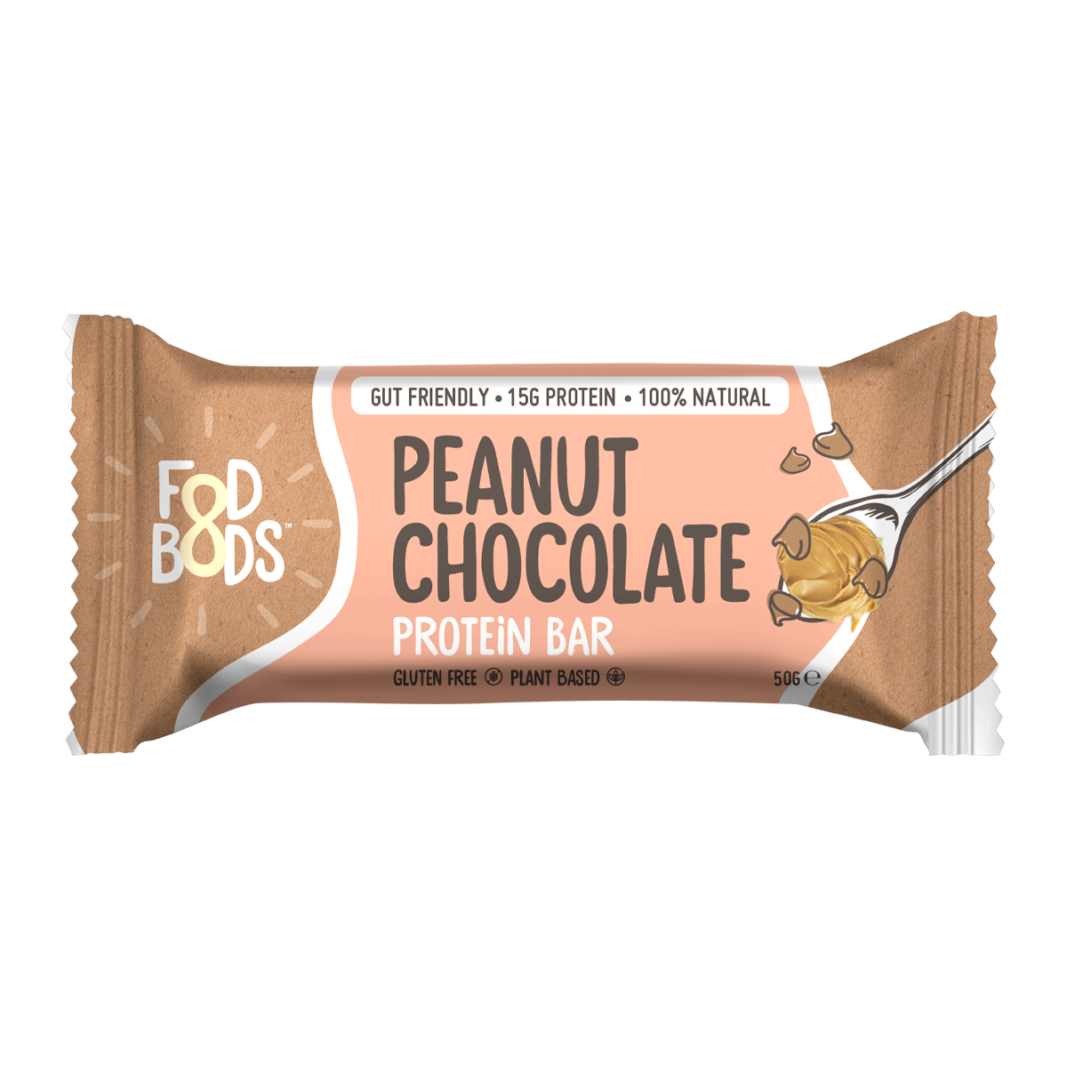 Fodbods Peanut Chocolate Protein Bar 50g: Fuel your day with a delicious blend of peanuts and chocolate, packed with 10g of protein to keep you energized and satisfied. Perfect for on-the-go snacking, post-workout recovery, or a guilt-free treat. Gluten-free, vegan, and free from artificial ingredients. Boost your nutrition and indulge your cravings with Fodbods Peanut Chocolate Protein Bar.