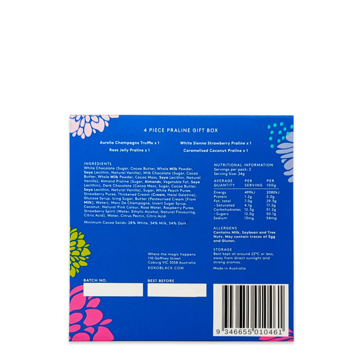 Indulge in luxury with Koko Black's Praline Gift Box. This 48g box is filled with exquisite pralines that will delight your taste buds and make the perfect gift for any occasion. Treat yourself or a loved one to the rich flavors of Koko Black's premium chocolates.