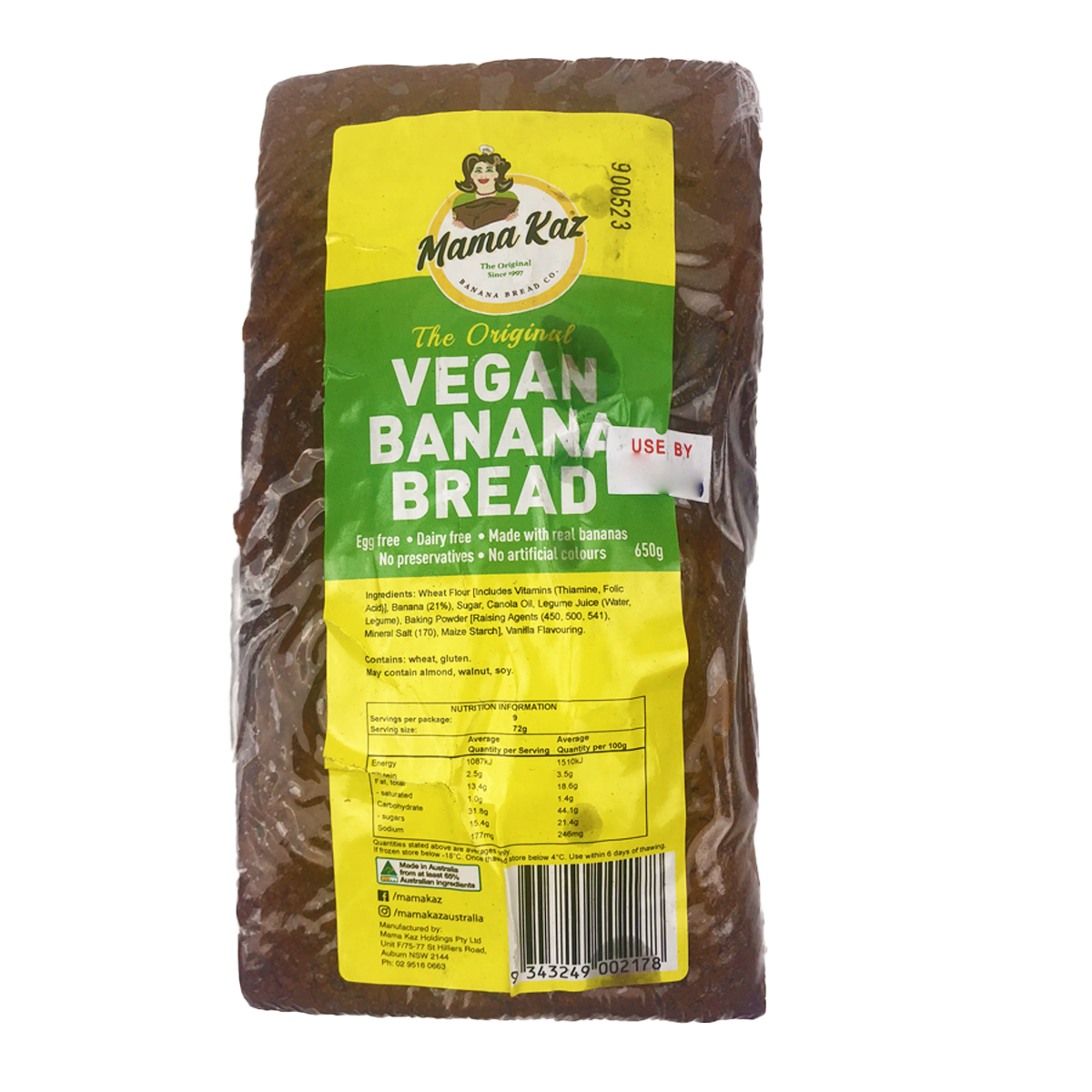 Indulge guilt-free with Mama Kaz Vegan Banana Bread 650g. Made with wholesome ingredients, this moist and flavorful treat is perfect for satisfying your sweet cravings. Enjoy a delicious slice of vegan goodness that's sure to please your taste buds.