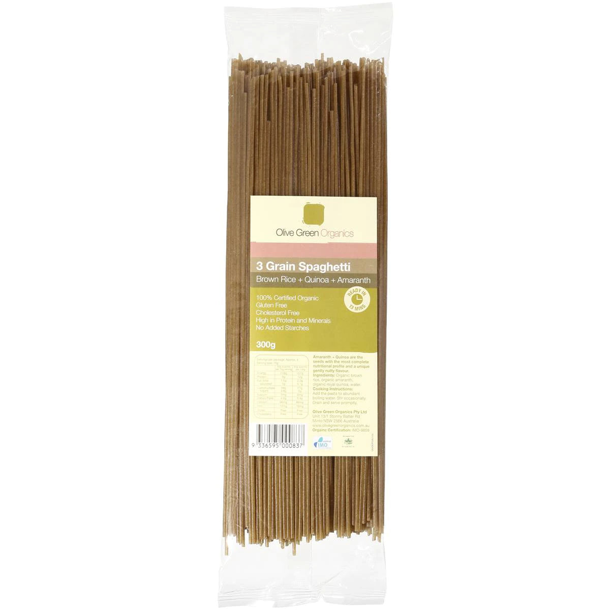 Olive Green Organics 3 Grain Spaghetti 300g: A nutritious blend of organic grains for a wholesome and delicious meal. High in fiber and protein, this spaghetti is perfect for a healthy and satisfying dinner. Enjoy the natural goodness of whole grains with every bite.