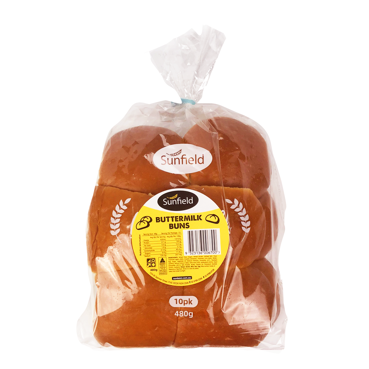 Sunfield Buttermilk Buns x10 480g are fluffy, delicious buns that are perfect for any meal. Made with high-quality ingredients, these buns are a great source of protein and fiber. Enjoy the rich buttermilk flavor in every bite. Perfect for breakfast, lunch, or dinner. Order now and elevate your meals with Sunfield Buttermilk Buns!