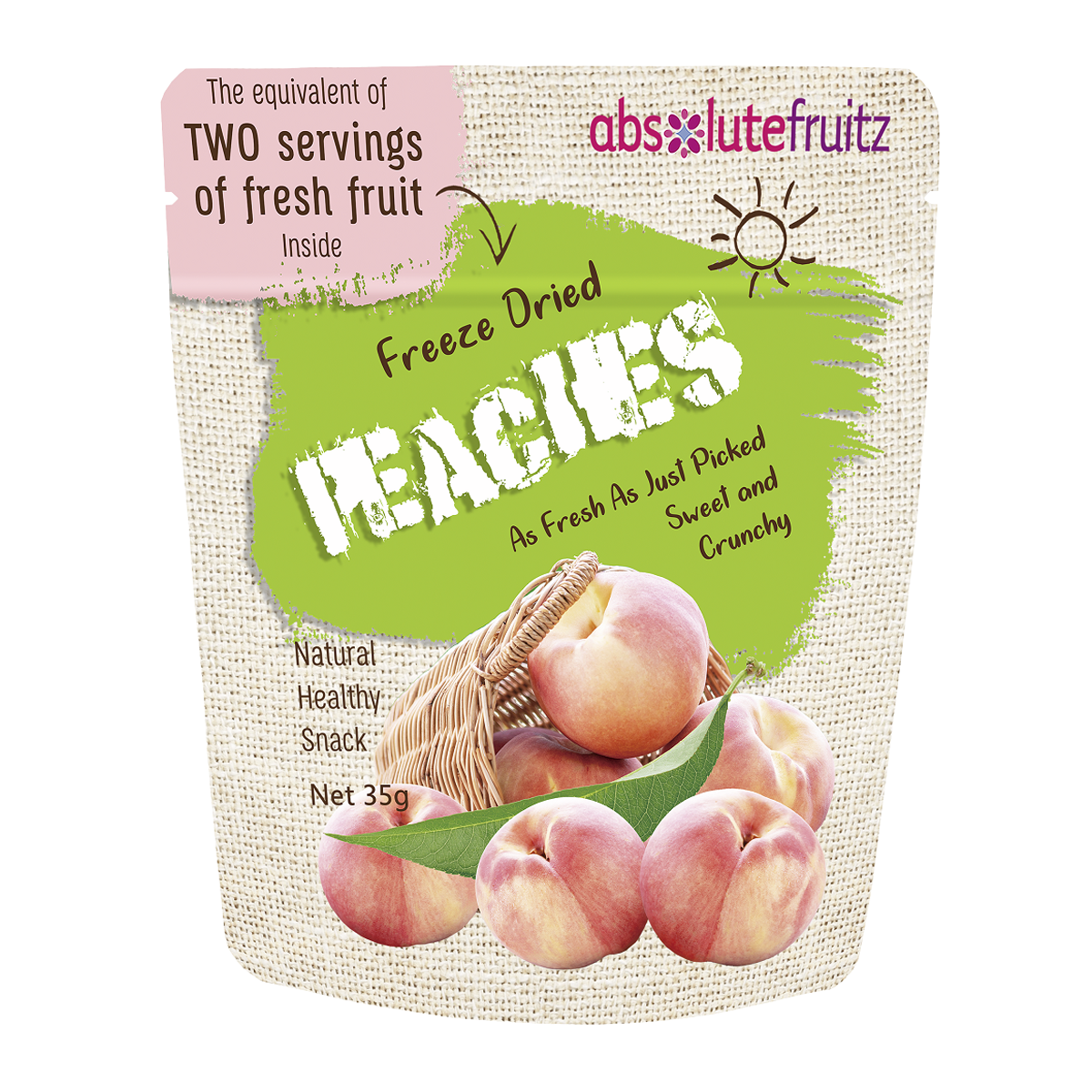 Absolutefruitz Freeze Dried Peach 35g: Enjoy the natural sweetness and intense flavor of real peaches anytime, anywhere. Packed with vitamins and minerals, these crispy peach slices make a healthy and convenient snack for on-the-go energy. Experience the pure taste of nature with Absolutefruitz Freeze Dried Peach 35g.