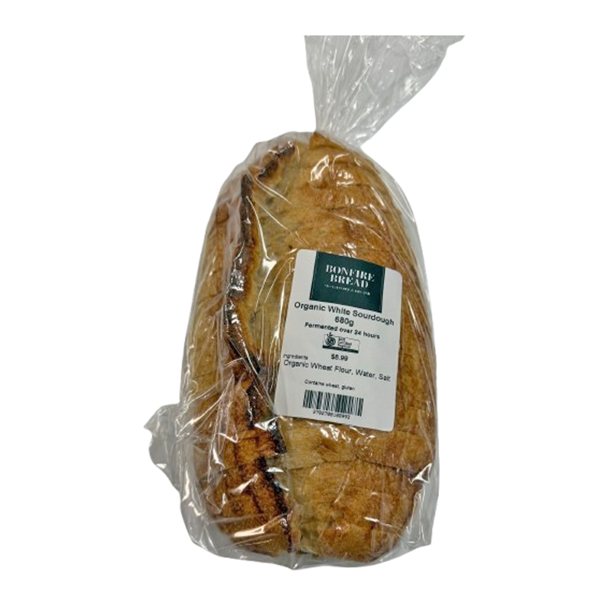 Bonfire Organic White Sourdough 680g: Enjoy the perfect blend of organic ingredients and traditional sourdough flavor in every bite. Handcrafted with care for a wholesome, delicious taste. Elevate your meals with this healthy, preservative-free bread option.