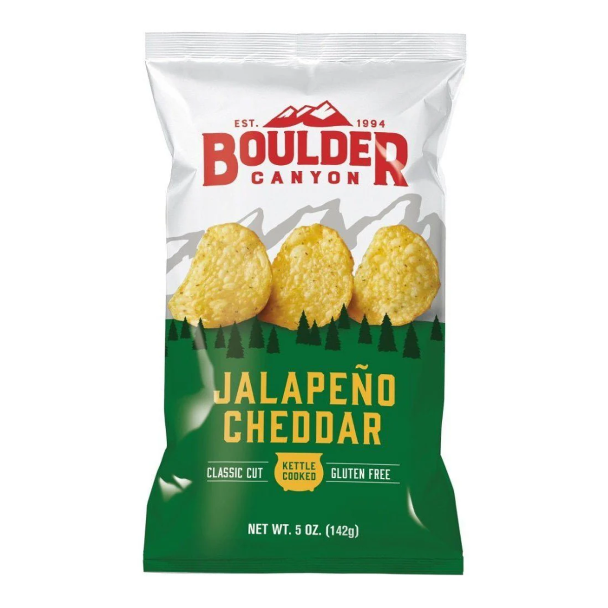 Spice up your snack time with Boulder Canyon Jalapeno Potato Chips! Made with real jalapenos for a fiery kick, these crunchy chips are perfect for those who crave bold flavors. Enjoy the heat with every bite of these gluten-free, non-GMO chips. Add a zesty twist to your snacking experience with Boulder Canyon Jalapeno Potato Chips today!